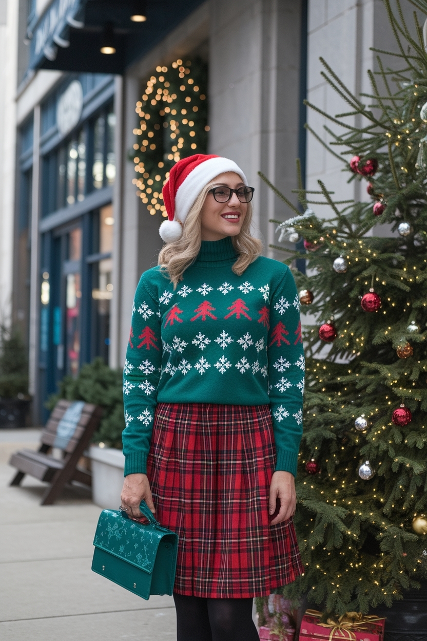 • Festive Skirt: Pair it with a plaid midi skirt for a chic look.