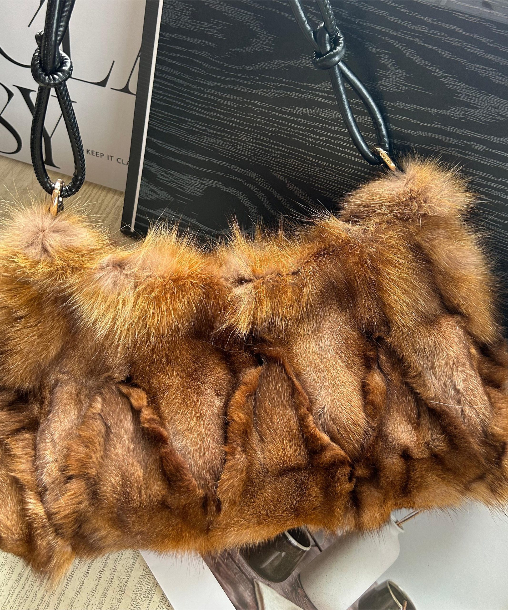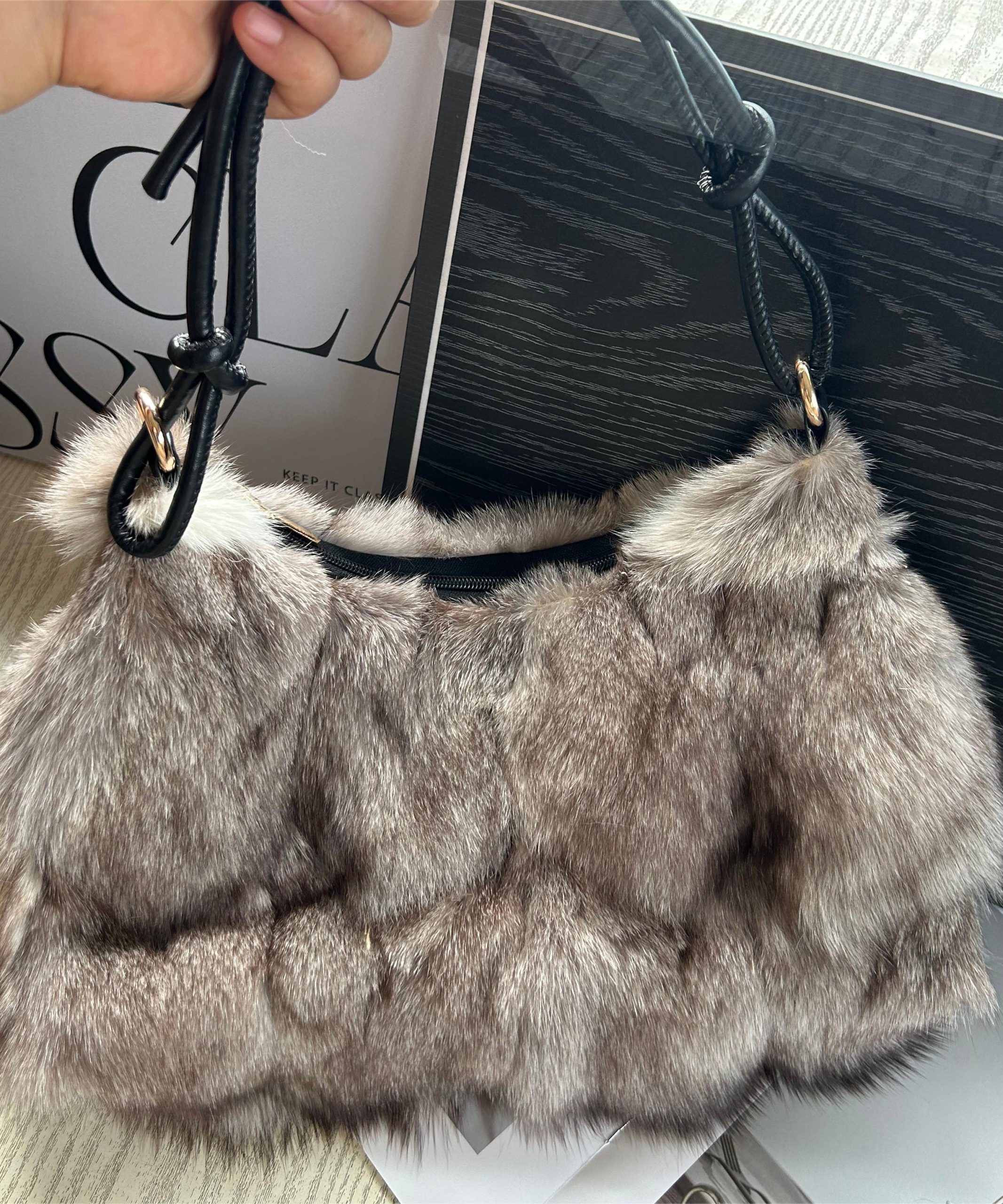 This bag is made of fine Fox Fur fabric.