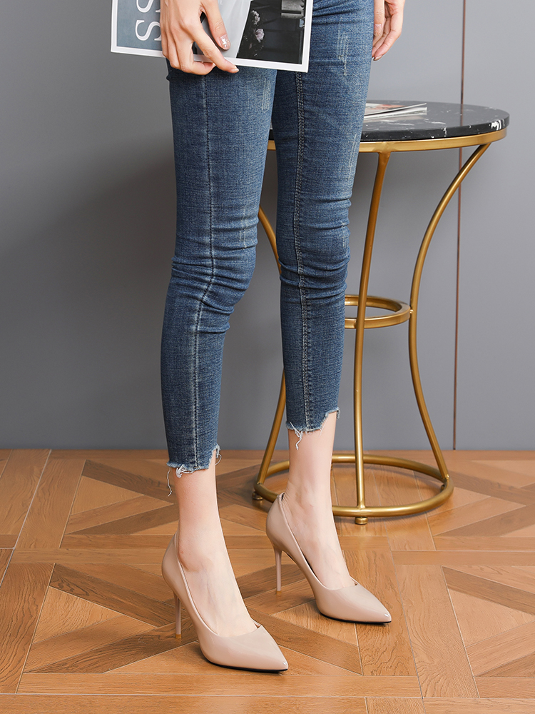 Girl Patent Leather High Heels Pointed Toe Thin Heel Shallow – Outfit Ideas
