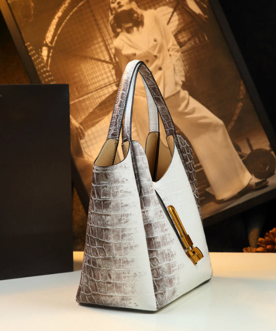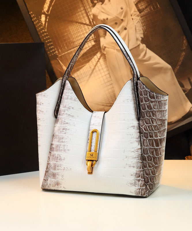 2025 New White Large Capacity Calf Leather Tote Handbag
