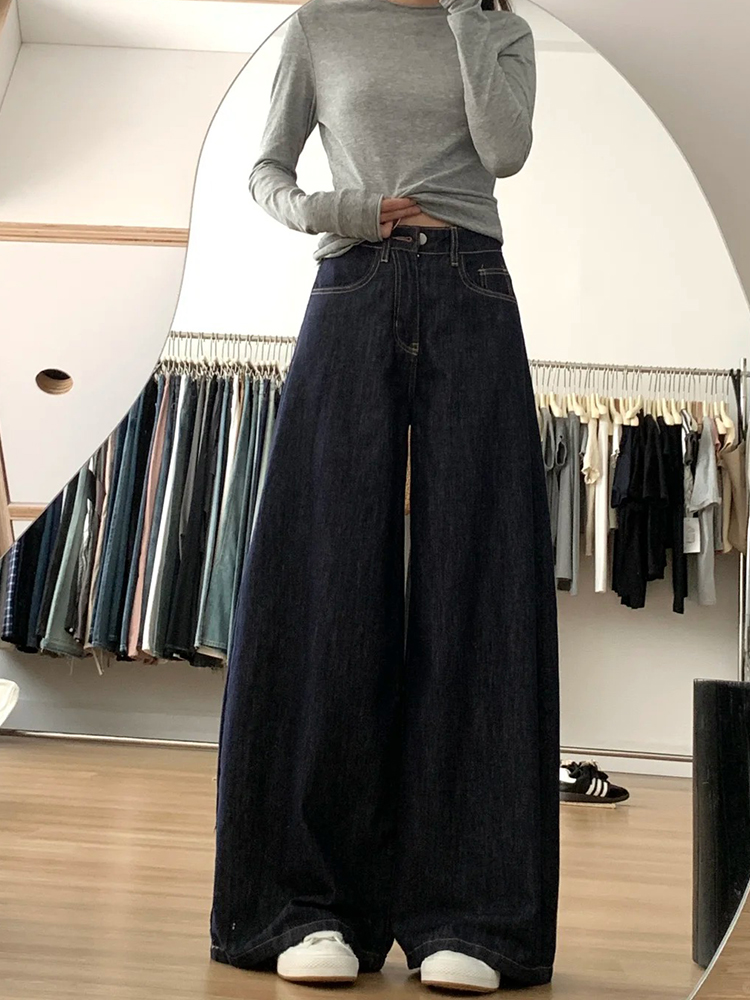 Discover the perfect blend of comfort and style with our A-Line Wide-Leg Denim Pants for Women. Designed with a loose fit, these trendy pants flatter pear-shaped figures and provide a chic, casual look for any occasion. Made from high-quality denim, they offer both durability and versatility, making them a must-have addition to your wardrobe. Elevate your fashion game and enjoy effortless style – add to your cart today!