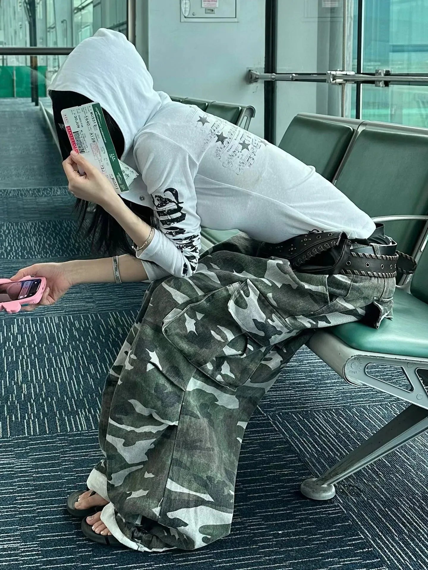 Acubi-style hooded top with star and gothic text graphics. Slim fit, lightweight feel, and edgy vibes make it a statement piece for layered street looks.
