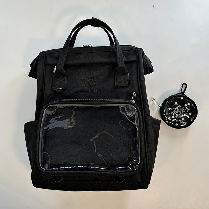 This is a spacious and waterproof mom Ita bag that can accommodate a 15.6-inch laptop. It comes with two insert boards, one transparent PVC and one in the same color scheme. Additionally, it includes a small circular hanging pouch for can badges. It’s perfect for use as a student backpack or for traveling.