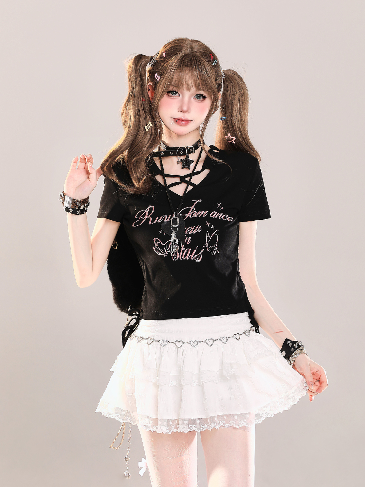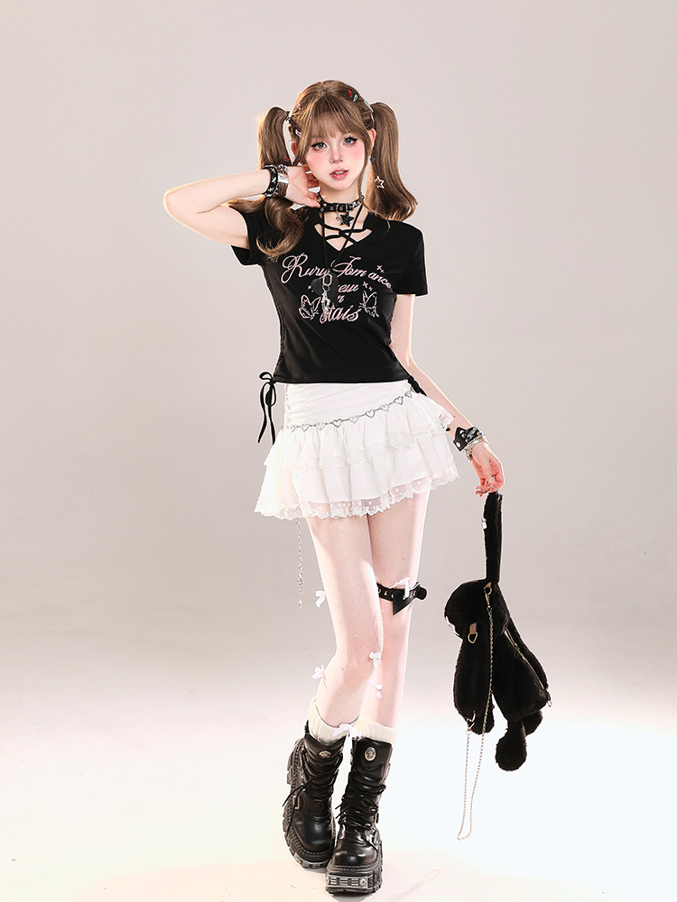 Elevate your girl’s summer wardrobe with our American Retro Butterfly Print Short Sleeve T-Shirt. This trendy cropped top features a charming ruffled drawstring design that offers a slim fit, perfectly blending comfort with style for a playful Y2K look. Ideal for pairing with high-waisted shorts or skirts, this eye-catching tee is perfect for any summer outing. Don’t miss out on this fashionable staple – add to your cart today!