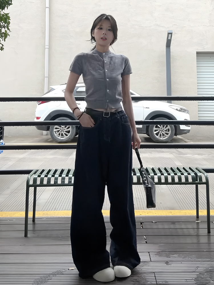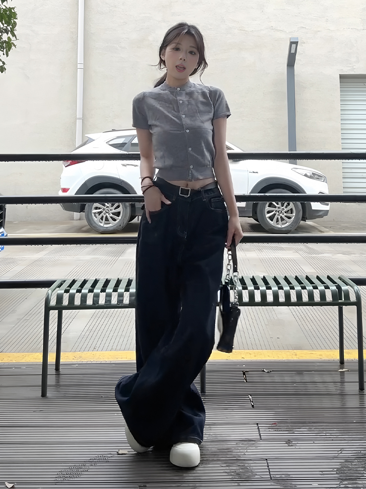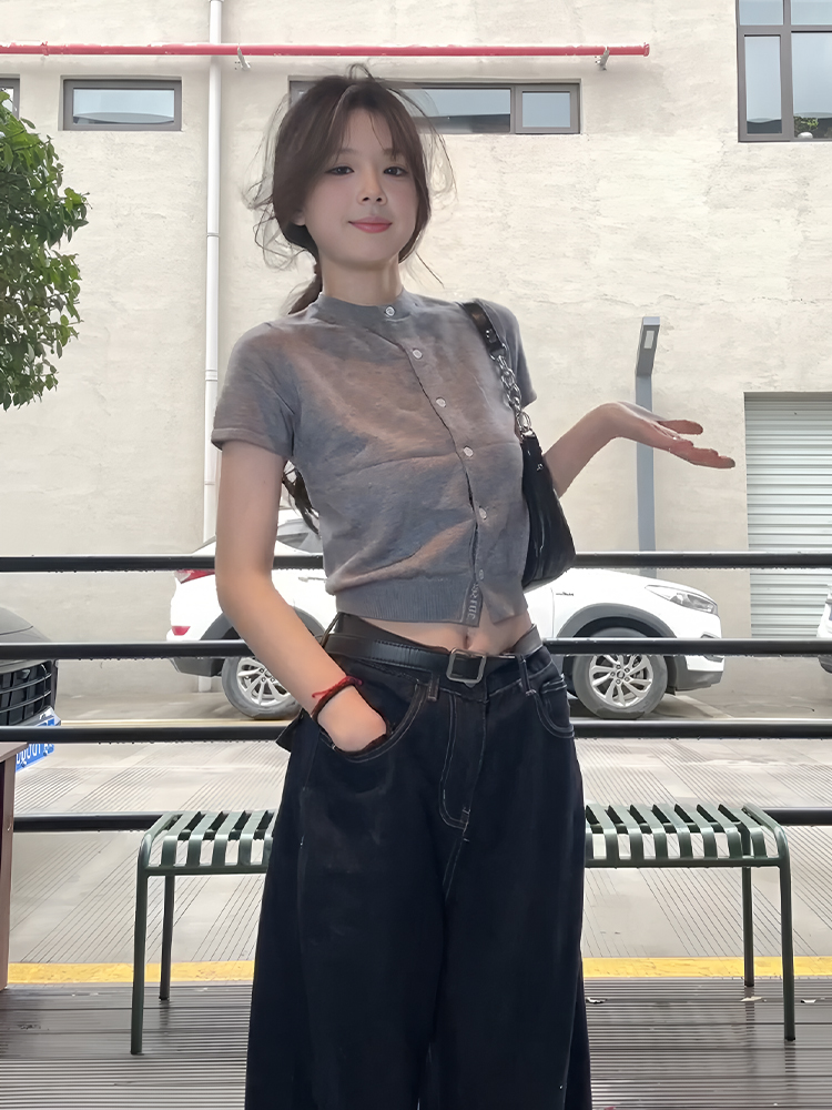 Retro Knitted Cardigan Women Gray Short Sleeve Slim Fit, Cas – Outfit Ideas