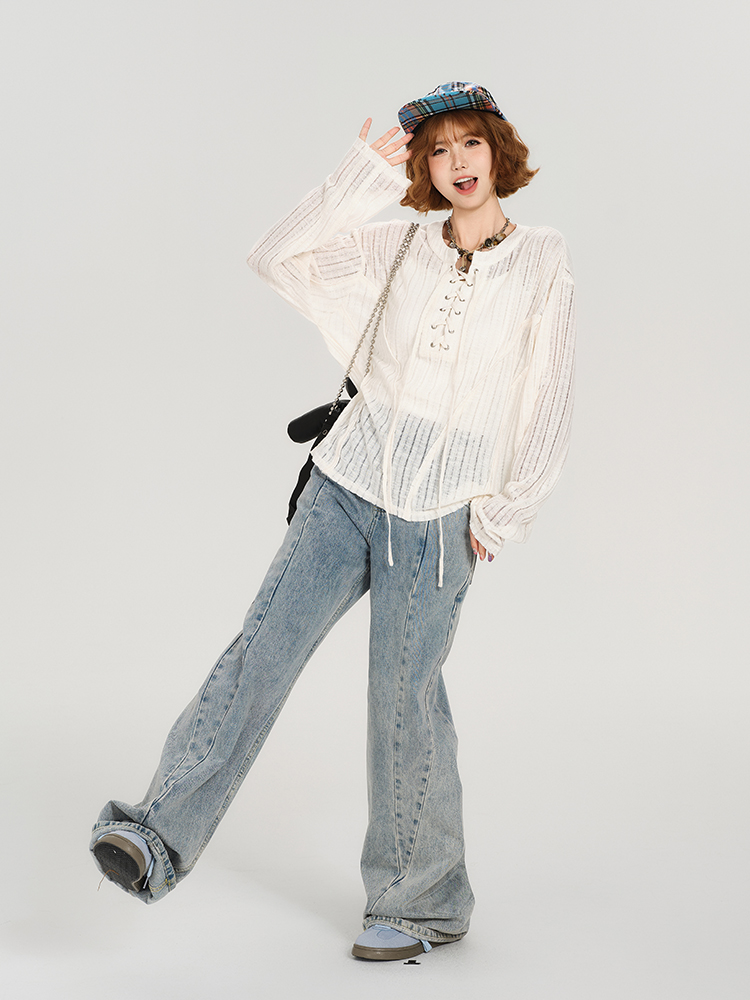 Retro Lace Up Hollow Sun Protection Shirt Women Summer Casual Loose Top High-quality product featuring prom dresses, spring outfits, business casual outfits and more. Modern design that fits the latest trends. Premium materials ensure durability and comfort. Order now for special offers! Product designed with attention to every detail. Suitable for all occasions and personal styles.