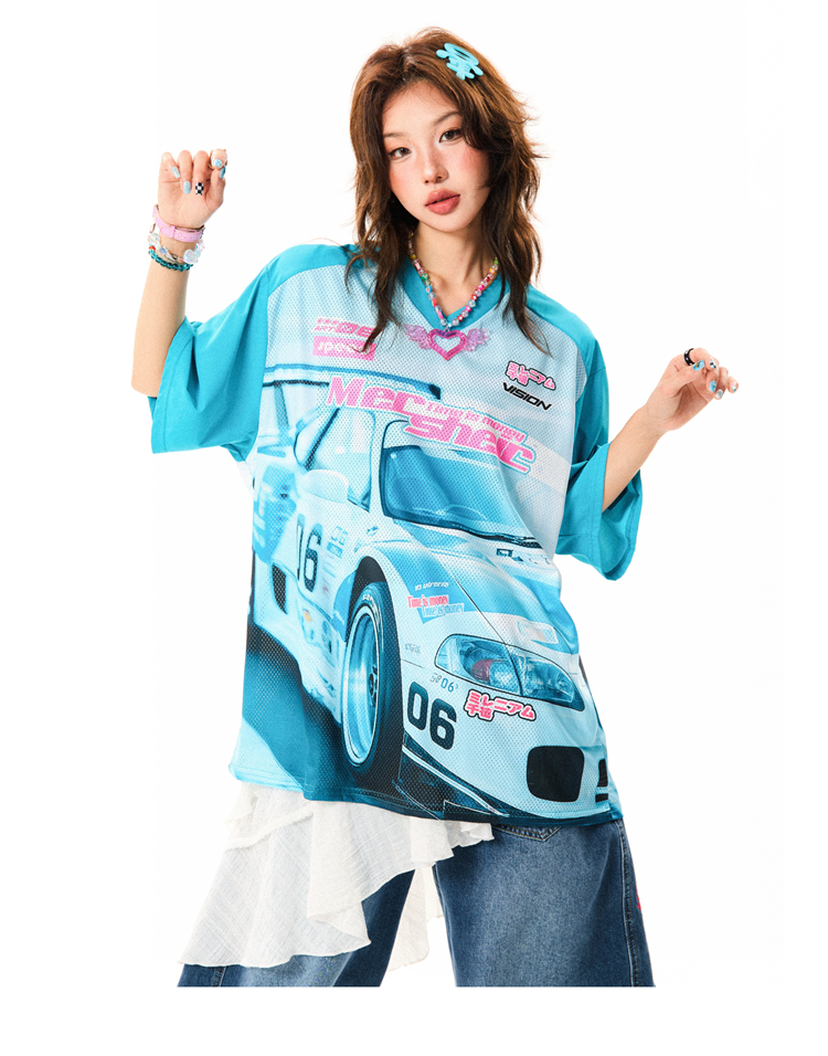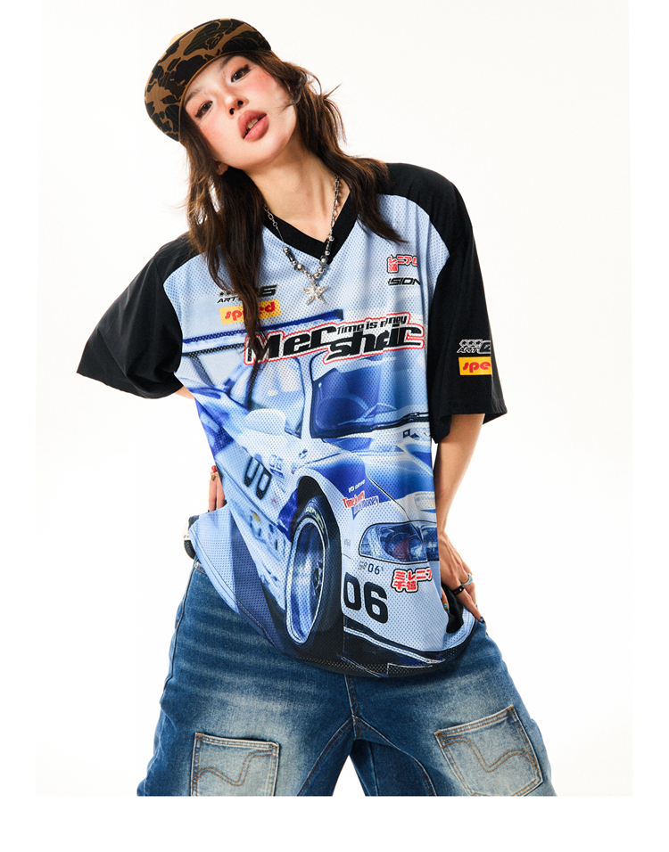Racing Graphic V- Neck Short Sleeve Women Summer Mesh Loose – Outfit Ideas High-quality product featuring prom dresses, spring outfits, business casual outfits and more. Modern design that fits the latest trends. Premium materials ensure durability and comfort. Order now for special offers! Product designed with attention to every detail. Suitable for all occasions and personal styles.