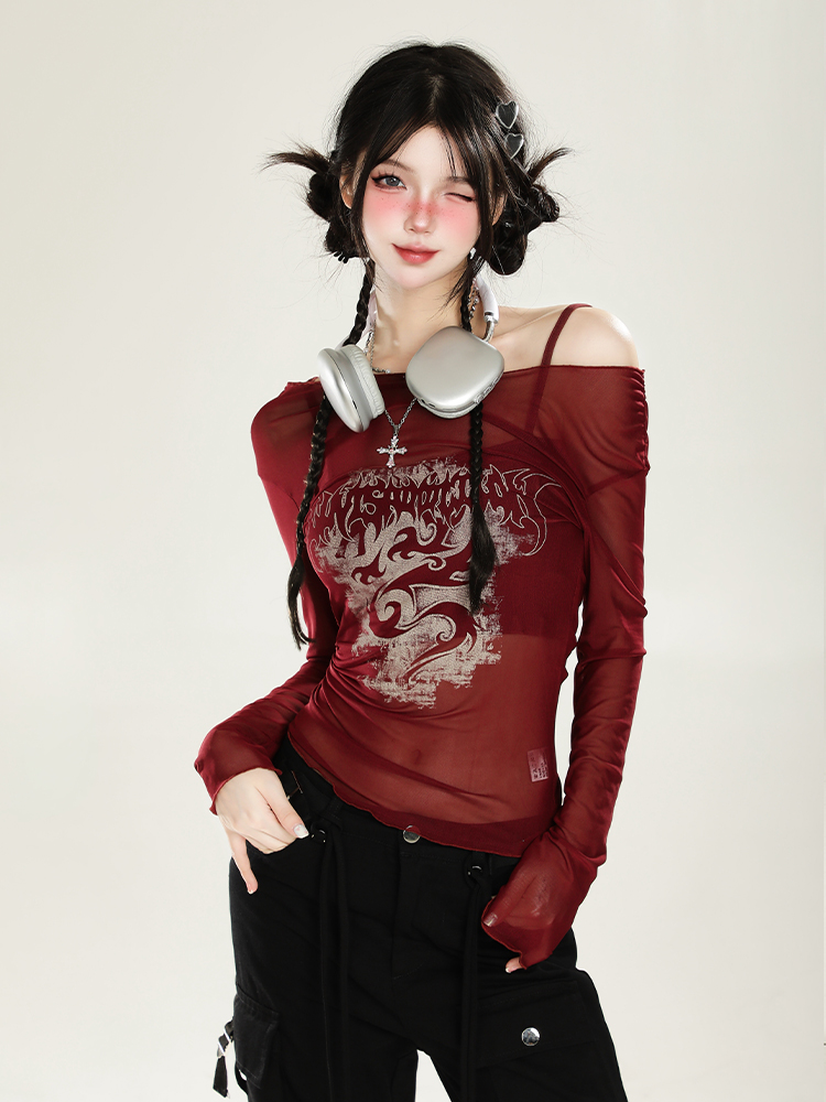 Red Off Shoulder Mesh Cover Up Two Set Women Sweet Spicy Spring/Summer Sun Protection Long Sleeve Top High-quality product featuring prom dresses, spring outfits, business casual outfits and more. Modern design that fits the latest trends. Premium materials ensure durability and comfort. Order now for special offers! Product designed with attention to every detail. Suitable for all occasions and personal styles.