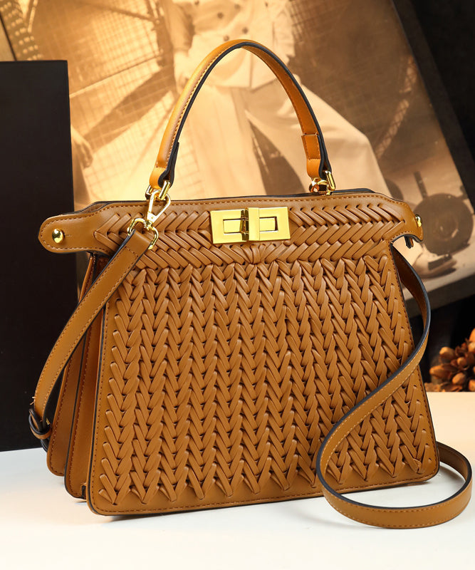 Art Brown Weave Large Capacity Faux Leather Tote Handbag