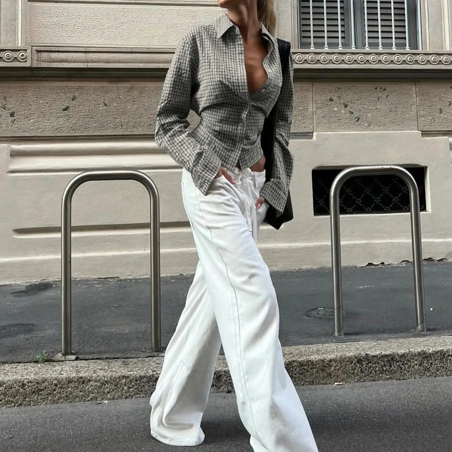 Office siren energy meets off-duty cool. The back tie plaid shirt brings a tailored front with a seductive edge. Fitted at the waist with a daring neckline and wrap-around detail that ties at the back, it’s the shirt for girls who make rules, not follow them.