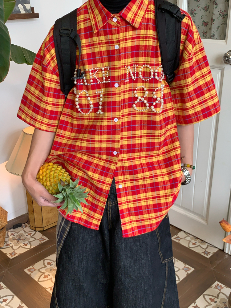 Beaded Plaid Shirt Men, Women, Summer Loose Fit Couple Stree – Outfit Ideas High-quality product featuring prom dresses, spring outfits, business casual outfits and more. Modern design that fits the latest trends. Premium materials ensure durability and comfort. Order now for special offers! Product designed with attention to every detail. Suitable for all occasions and personal styles.