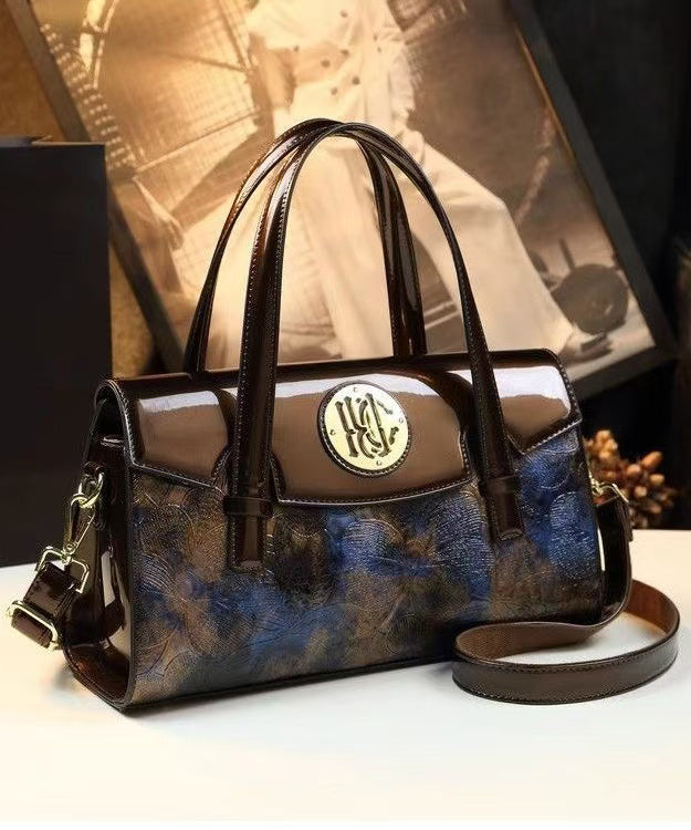 Beautiful Blue Embossed Classy Calf Leather Tote Handbag