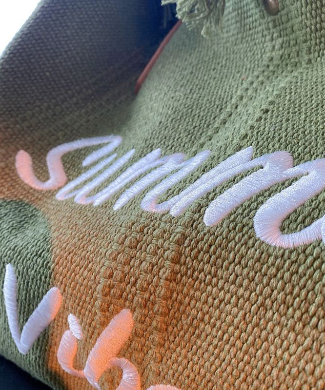 Beautiful Green Letter Embroidery Canvas Oversize Tote Handbag