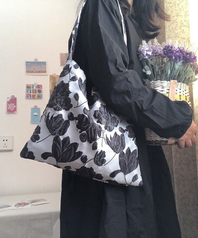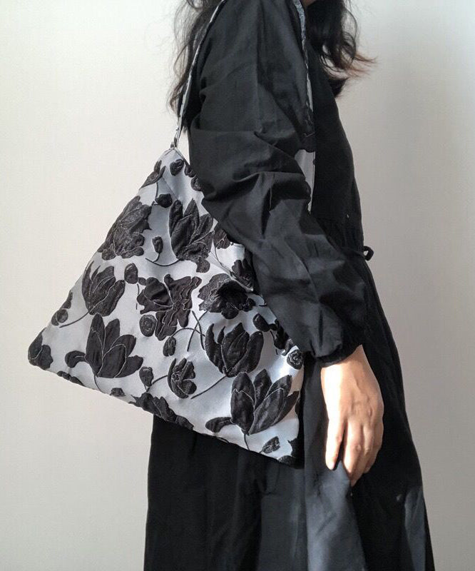 Beautiful Grey Flower Jacquard Square Spandex Satchel Handbag
