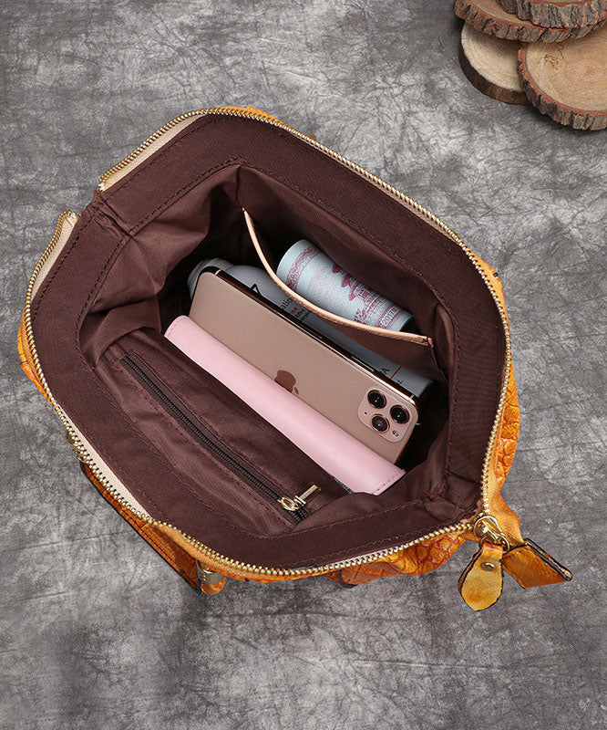 Beautiful Yellow Crocodile pattern Paitings Calf Leather Satchel Handbag