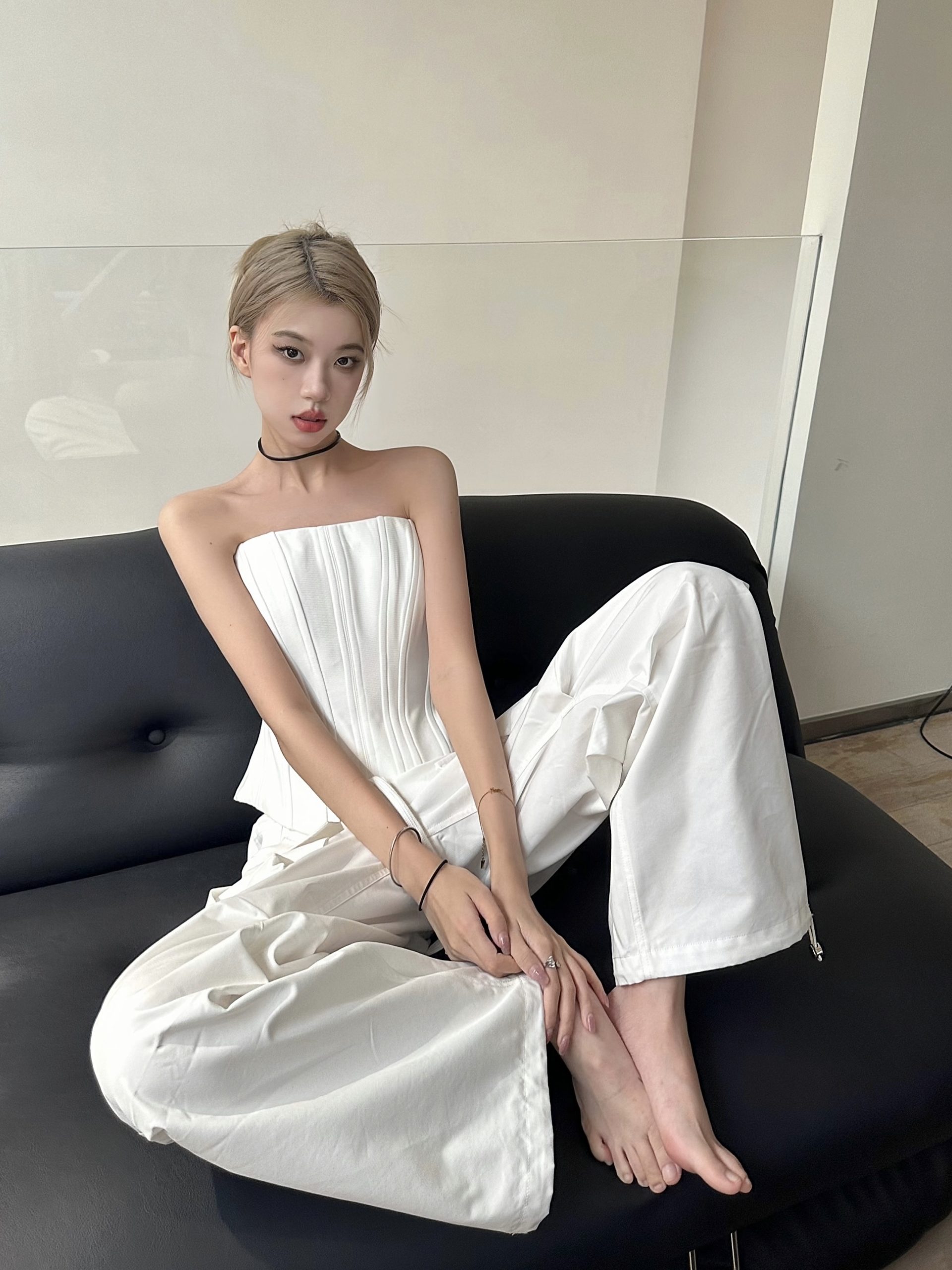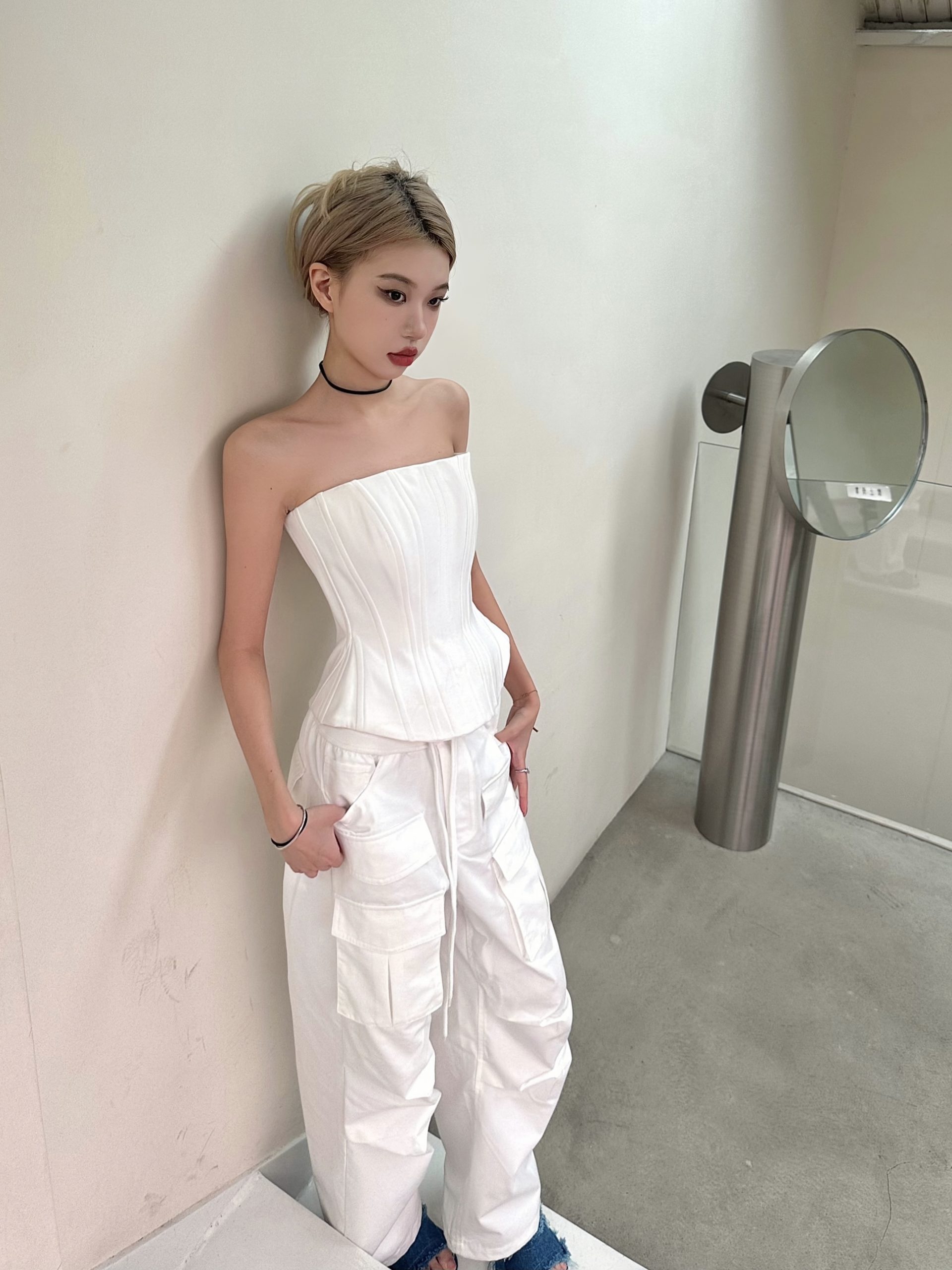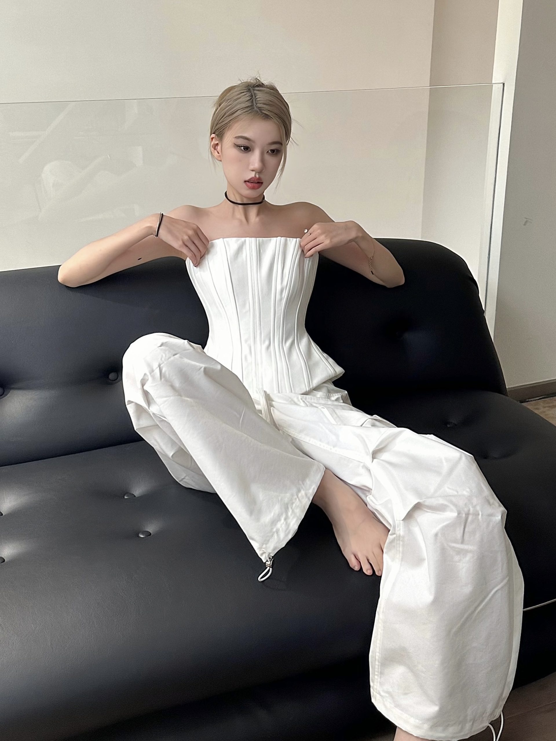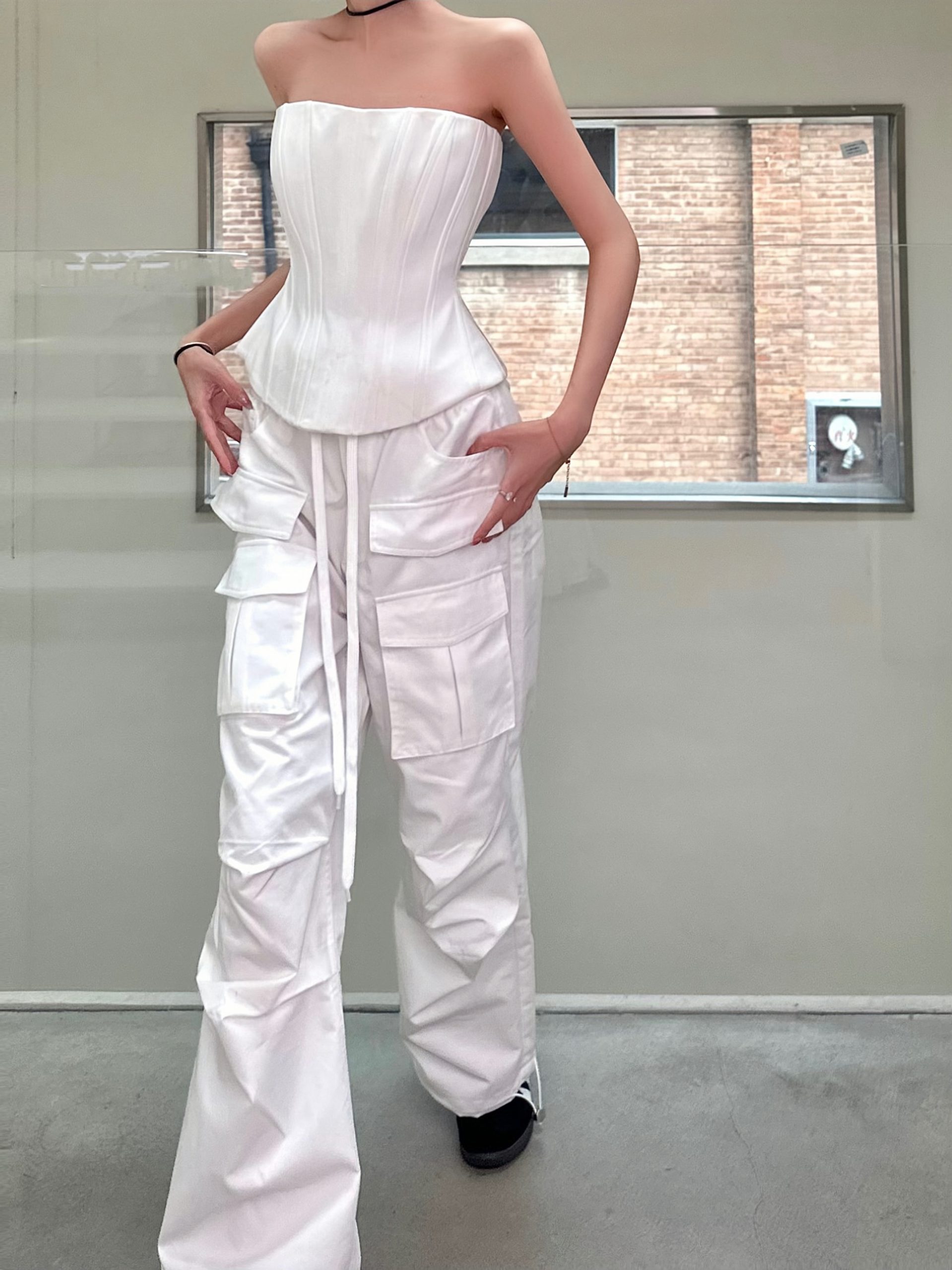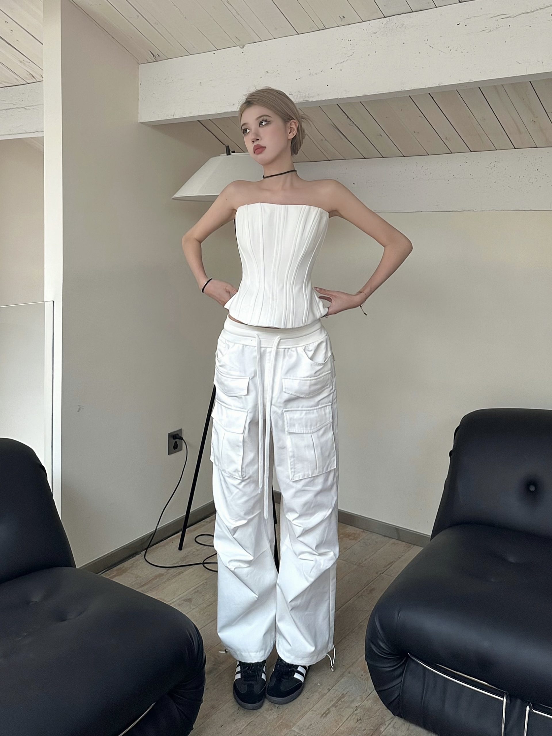 Elevate your cool Y2K workwear style with our striking Black and White Fishbone Strapless Top, featuring a flattering waist-cinching design that accentuates your silhouette. Paired with straight-leg parachute pants, this ensemble offers a perfect blend of comfort and chic sophistication, making it ideal for both office wear and after-work outings. Don’t miss out on this fashion-forward must-have—add it to your cart today!