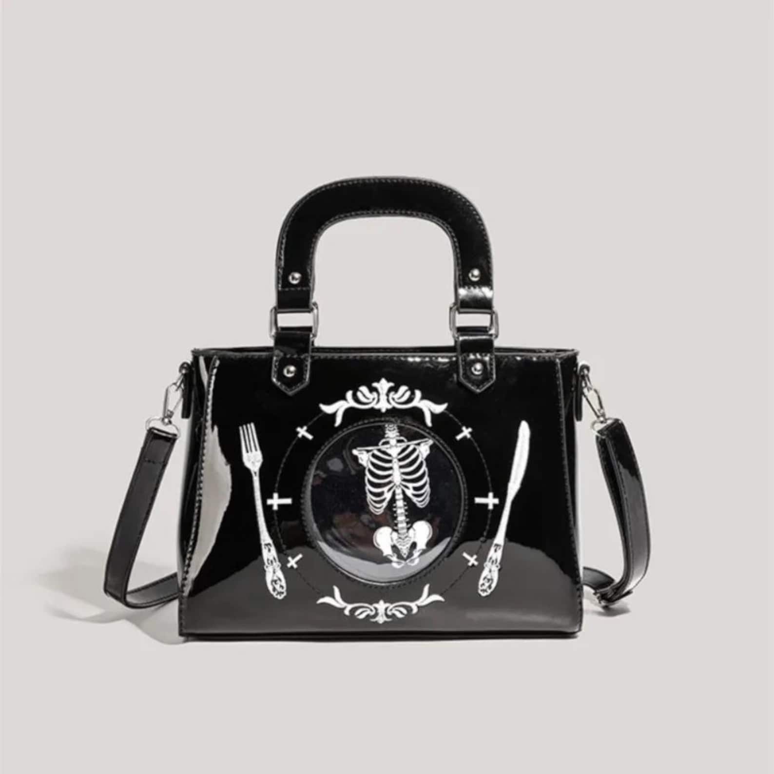 This Japanese Style Black Halloween Ita Bag is the perfect blend of gothic, Harajuku, and kawaii fashion. Designed with a square leather silhouette, transparent display pocket, and dual carry options, it works as a handbag, crossbody, or shoulder messenger bag.