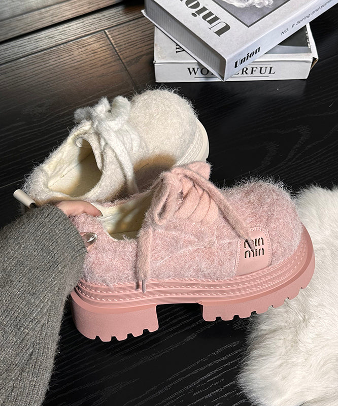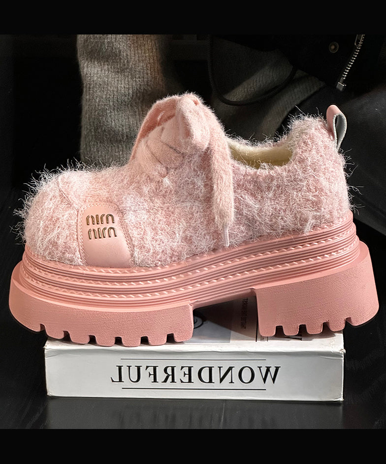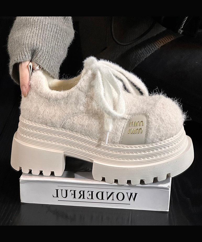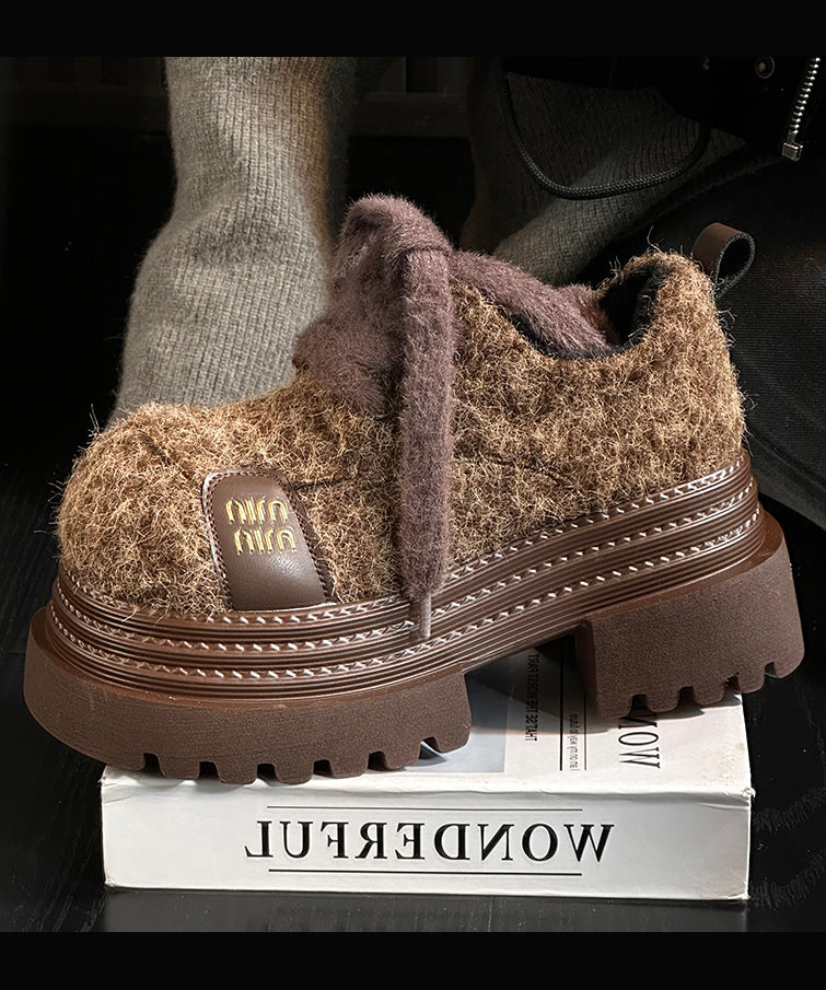 Blue Lace Up Chunky Sheepskin Chic Splicing Loafers