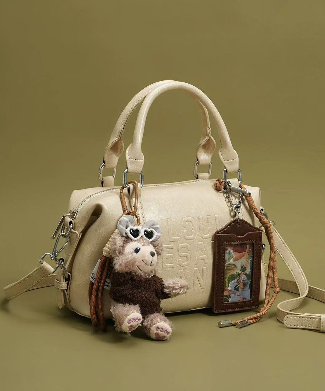 Be the first to review “Boho Beige Letter Embossing Bear Decorated Faux Leather Tote Handbag” Cancel reply