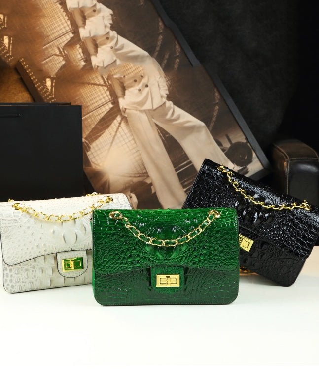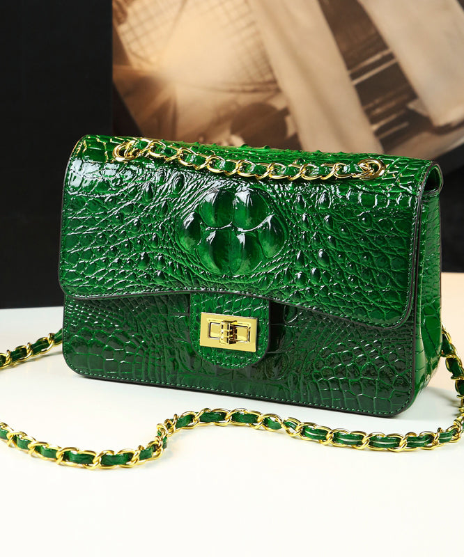 Boho Green Crocodile Pattern Faux Leather Satchel Handbag