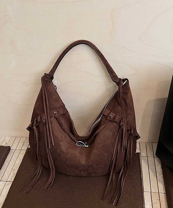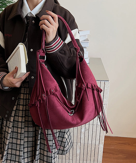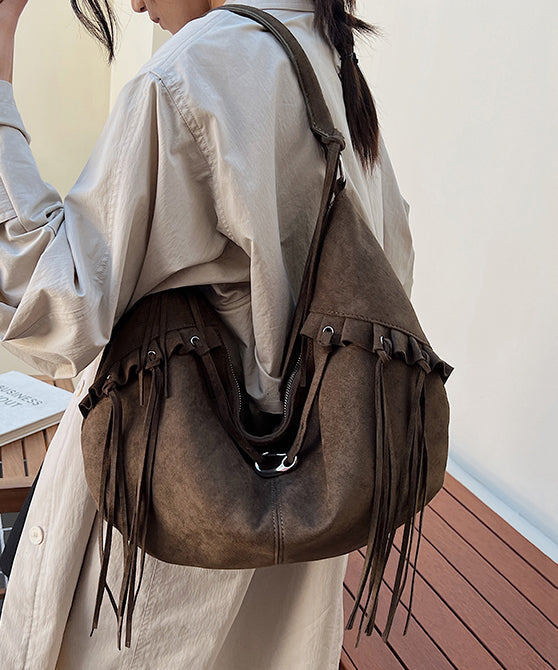 Boho Green Faux Suede Tassel Large Capacity Shoulder Bag