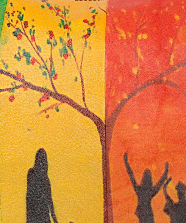 Boho Yellow character Paitings Calf Leather Tote Handbag