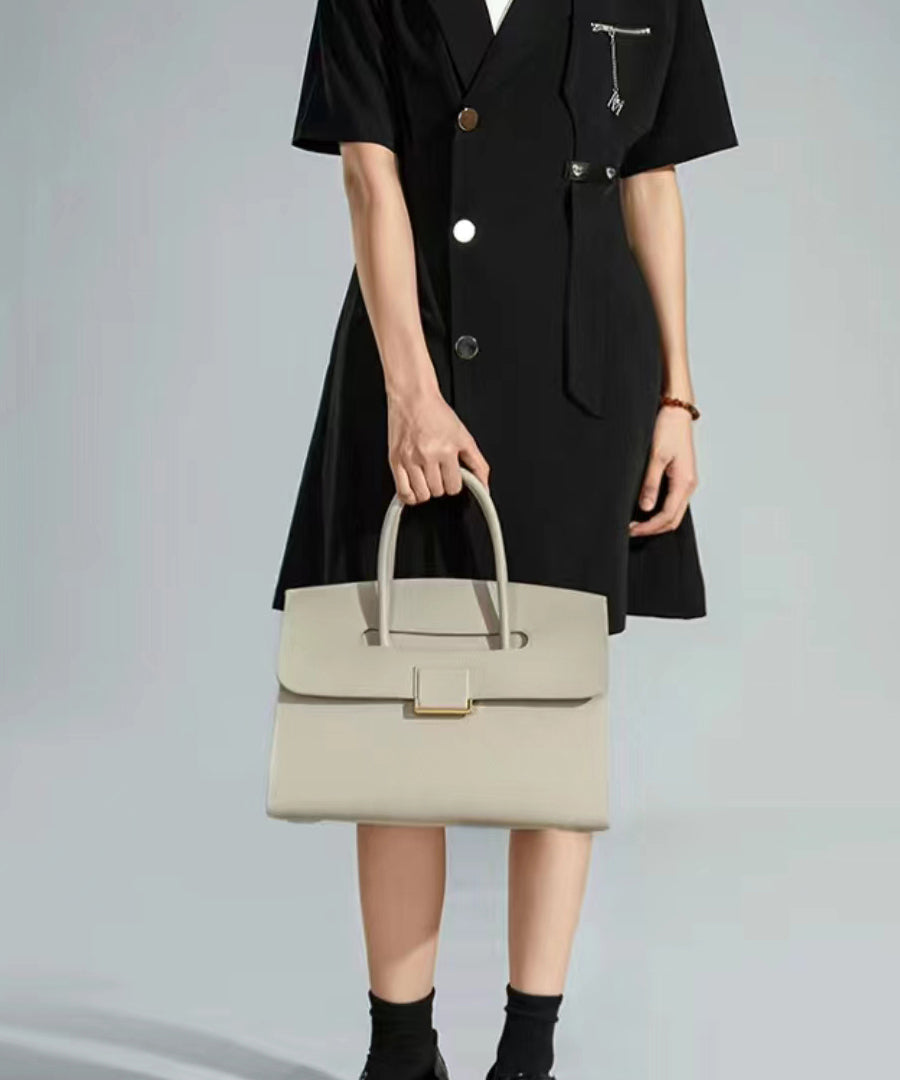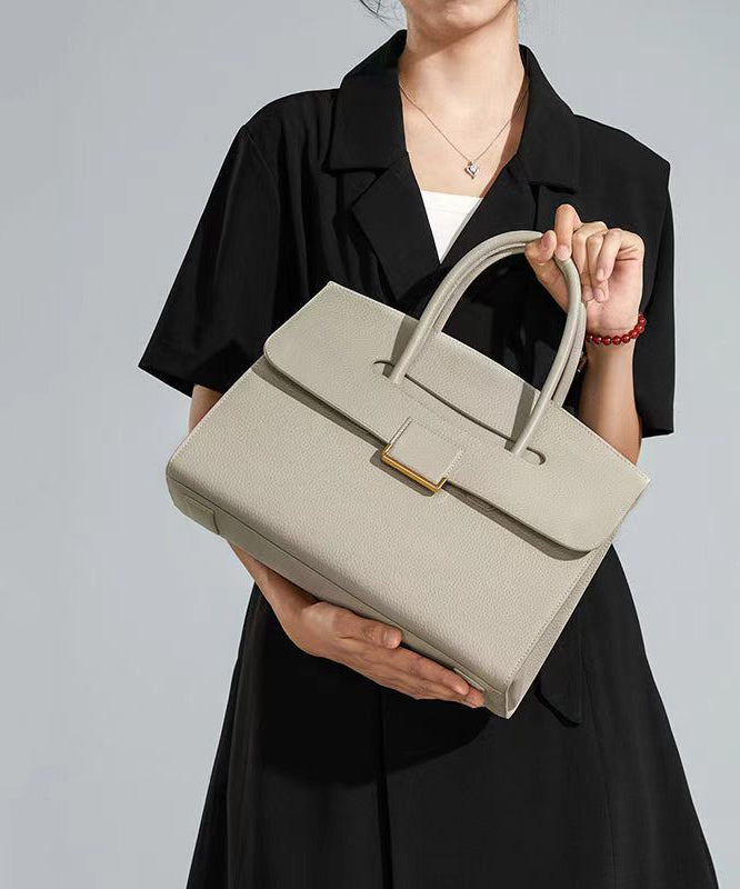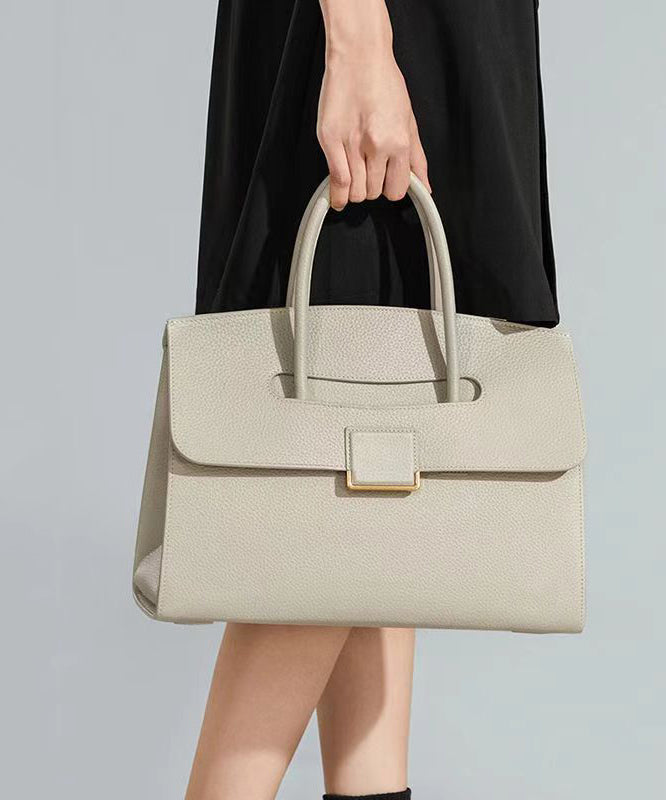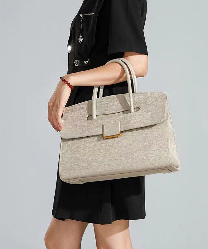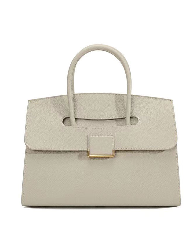 Boutique Beige Solid Durable Calf Leather Tote Handbag