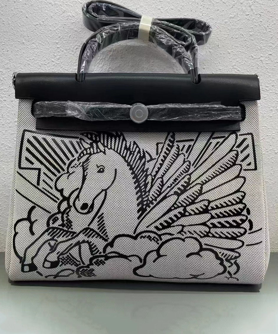 Be the first to review “Boutique Black Horse Calf Leather Patchwork Canvas Tote Handbag” Cancel reply