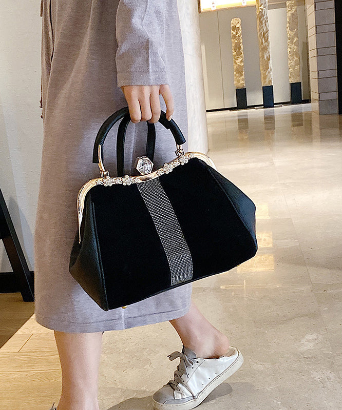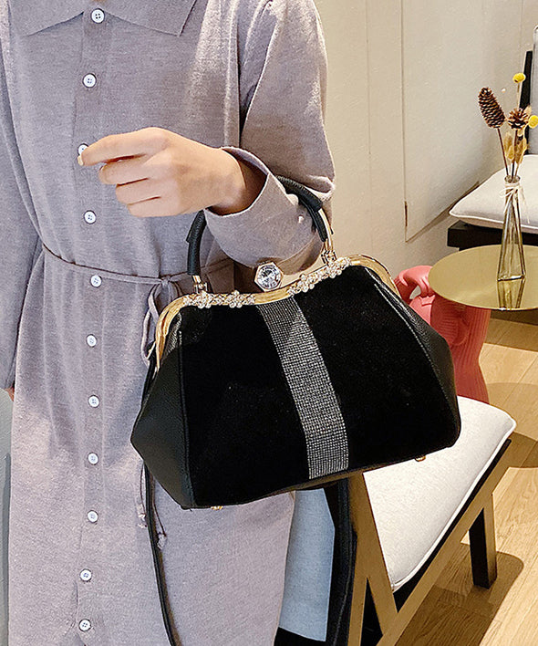 Boutique Black Zircon Patchwork Faux Leather Tote Handbag