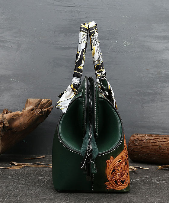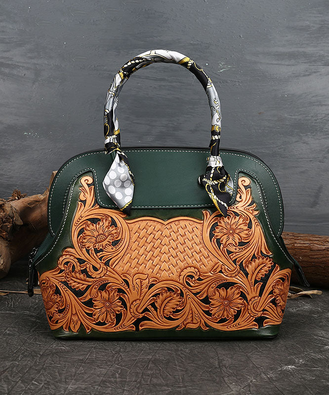 Boutique Blackish Green Print Patchwork Calf Leather Tote Handbag