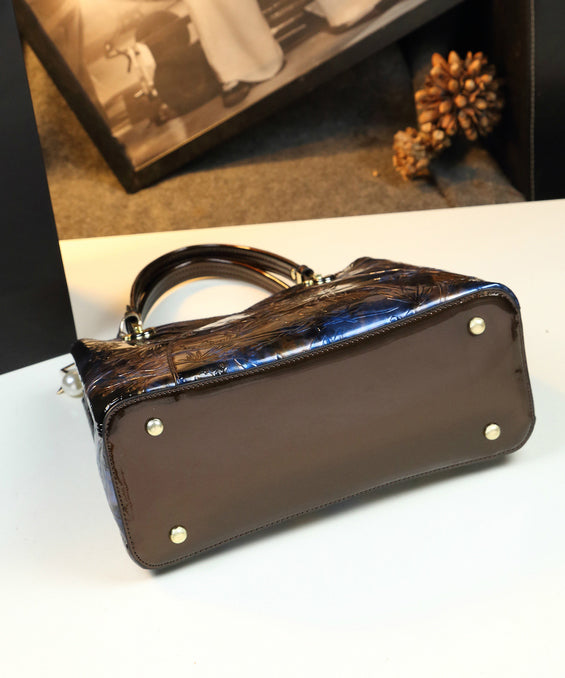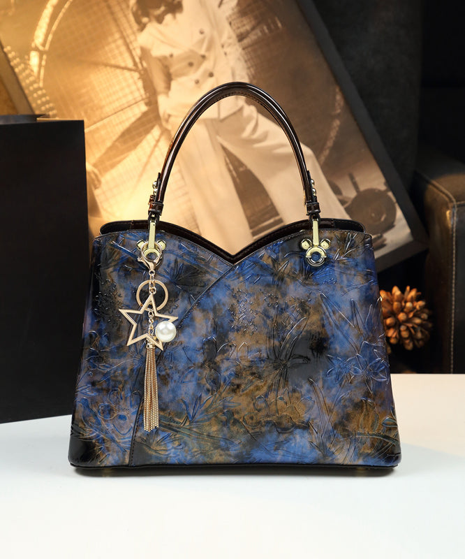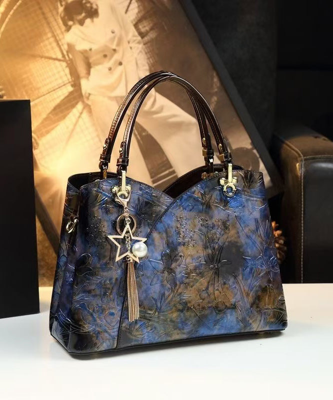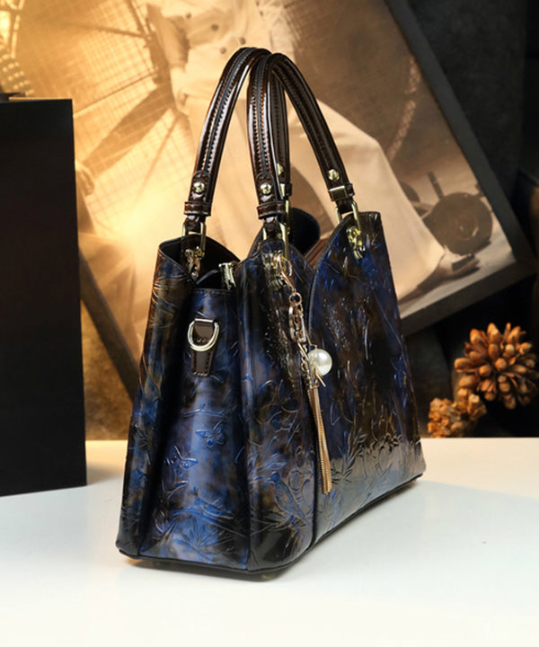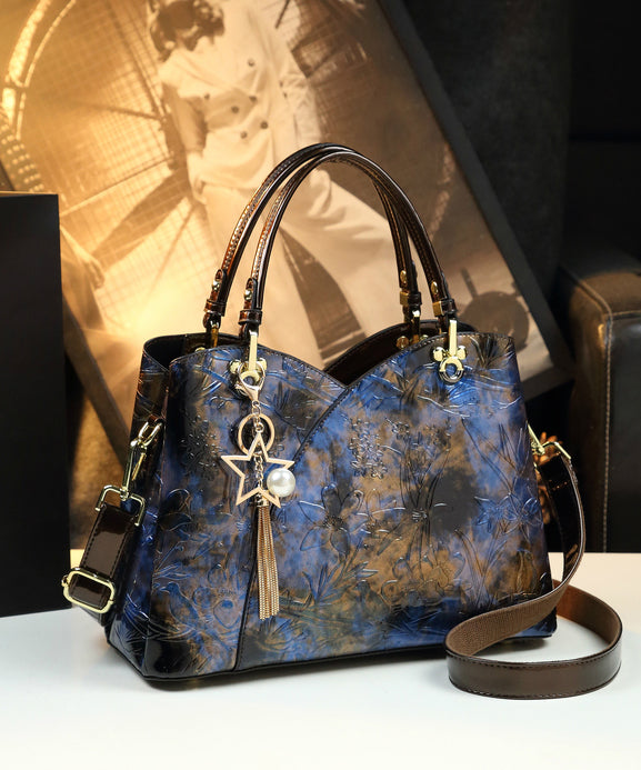 Boutique Blue Embossed Durable Calf Leather Tote Handbag
