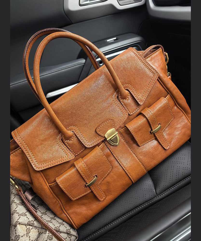 Boutique Brown Large Capacity Calf Leather Message Bag