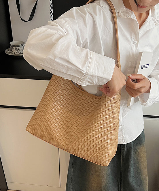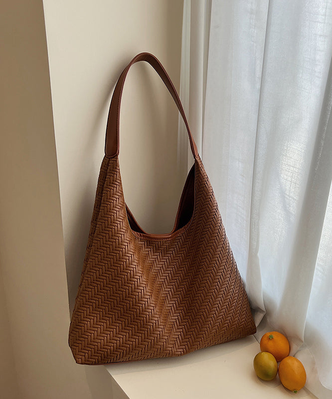 Boutique Brown Large Capacity Faux Leather Shoulder Bag