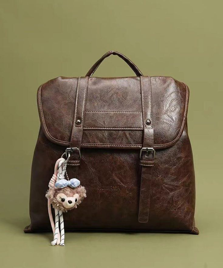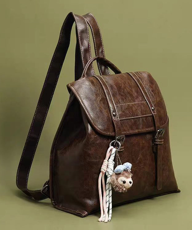 Boutique Brown Solid Durable Large Capacity Faux Leather Backpack Bag