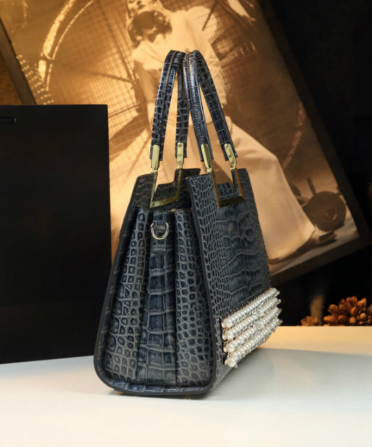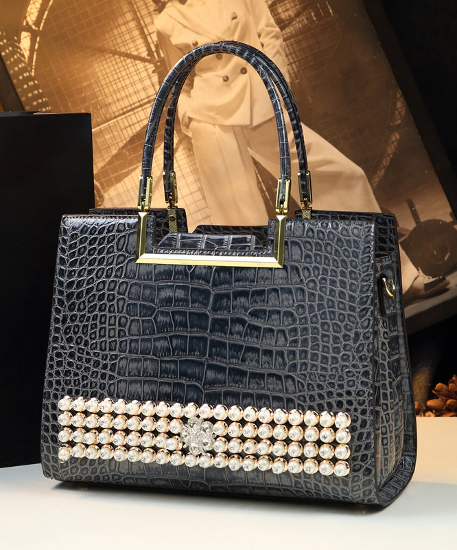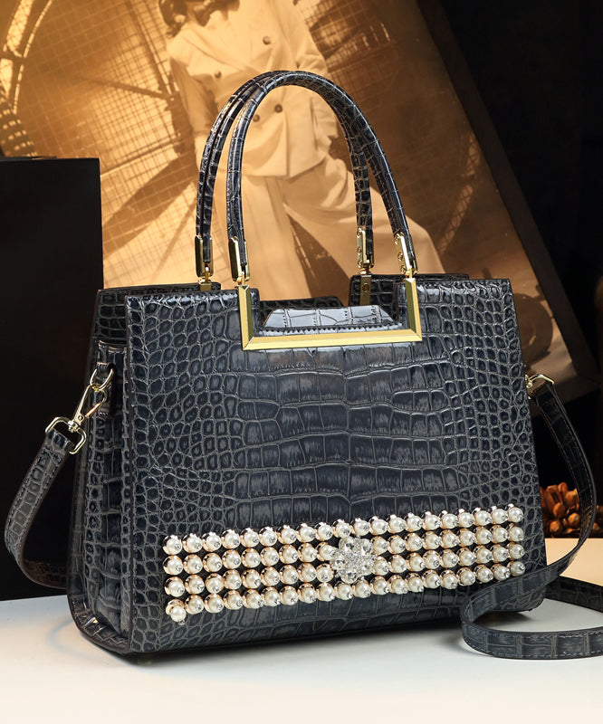 Boutique Grey Zircon Large Capacity Faux Leather Tote Handbag