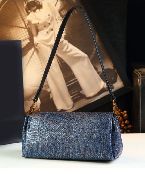 Boutique Navy Serpentine Durable CrossBody Satchel Handbag