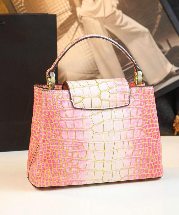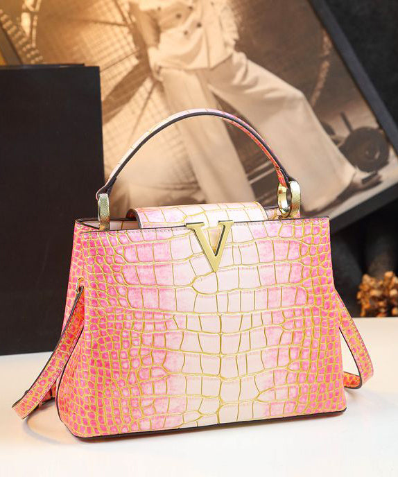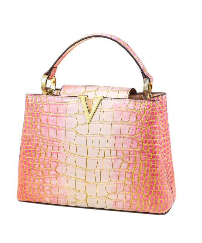 Boutique Pink Gradient Embossed Calf Leather Tote Handbag