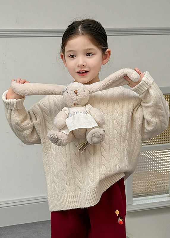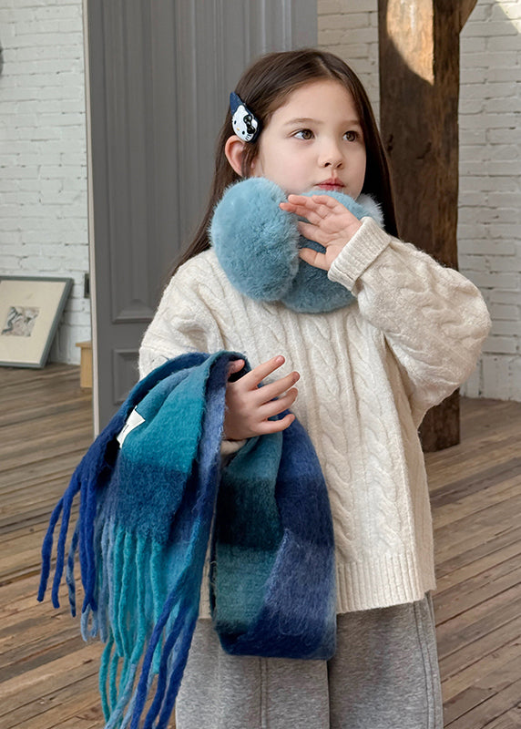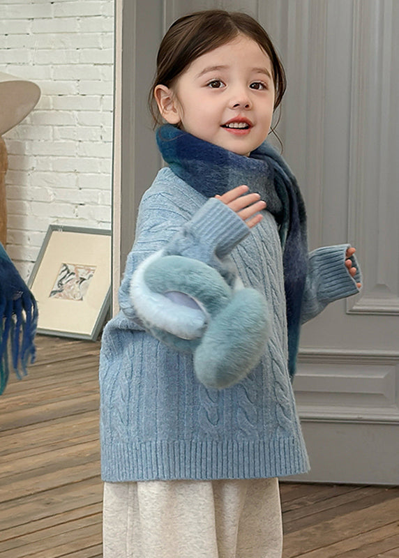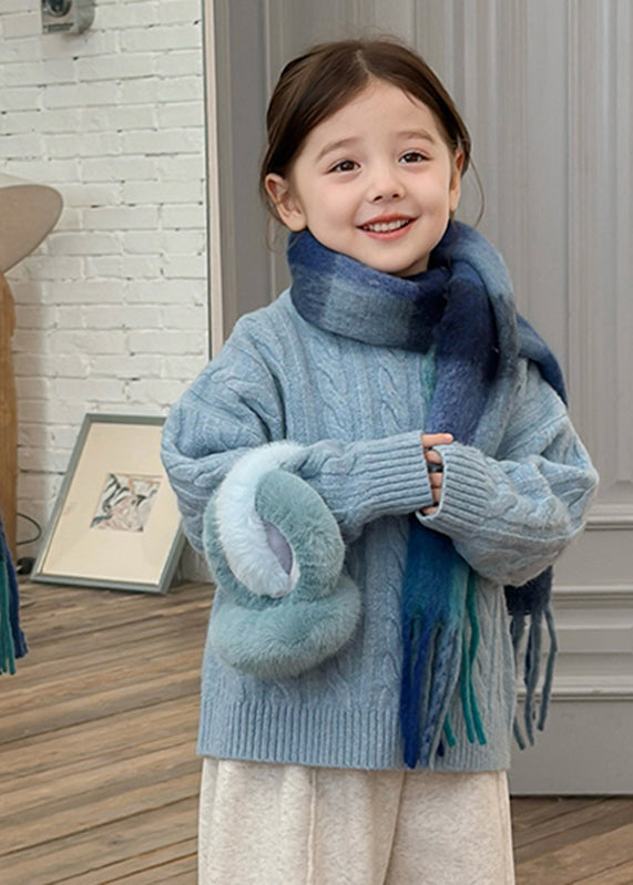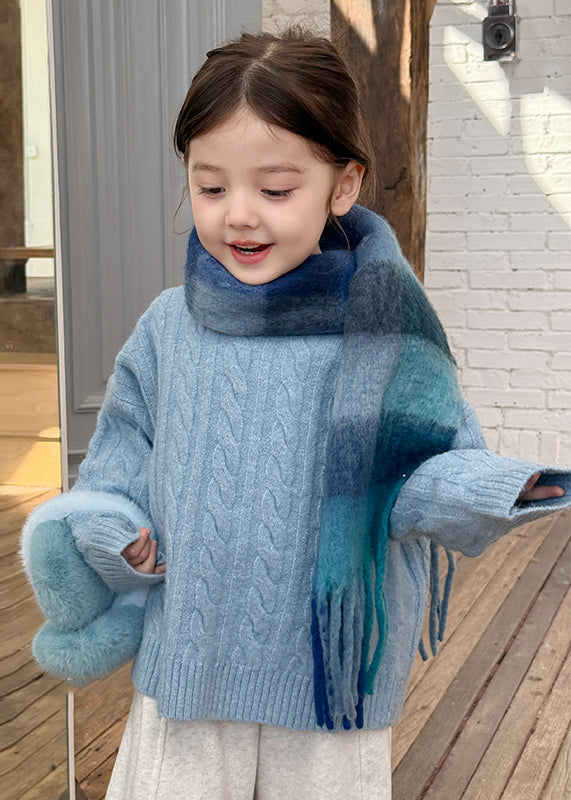 Brief Blue Patchwork Cable Cotton Knit Kids Sweater Tops Spring