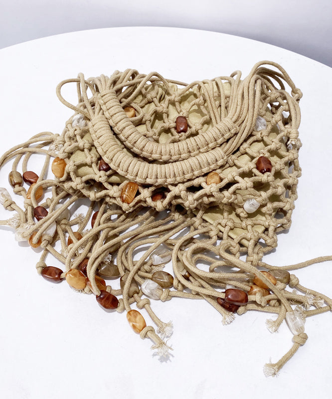 Be the first to review “Casual Beige Tasseled Nail Bead Woven Tote Handbag” Cancel reply