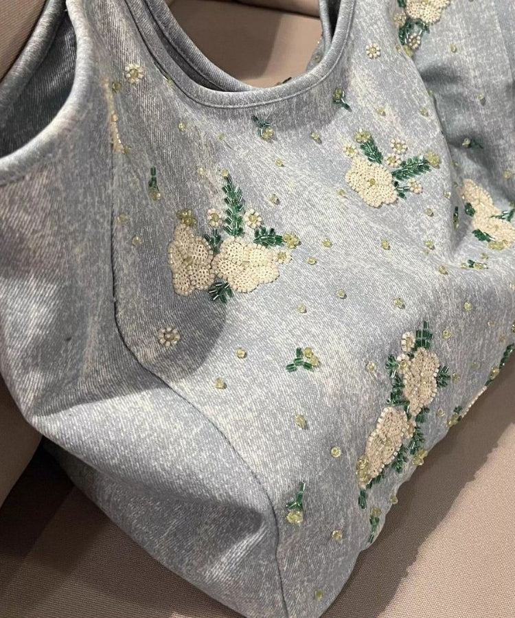 Casual Blue Embroideried Large Capacity Denim Shoulder Bag
