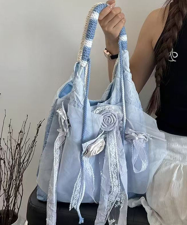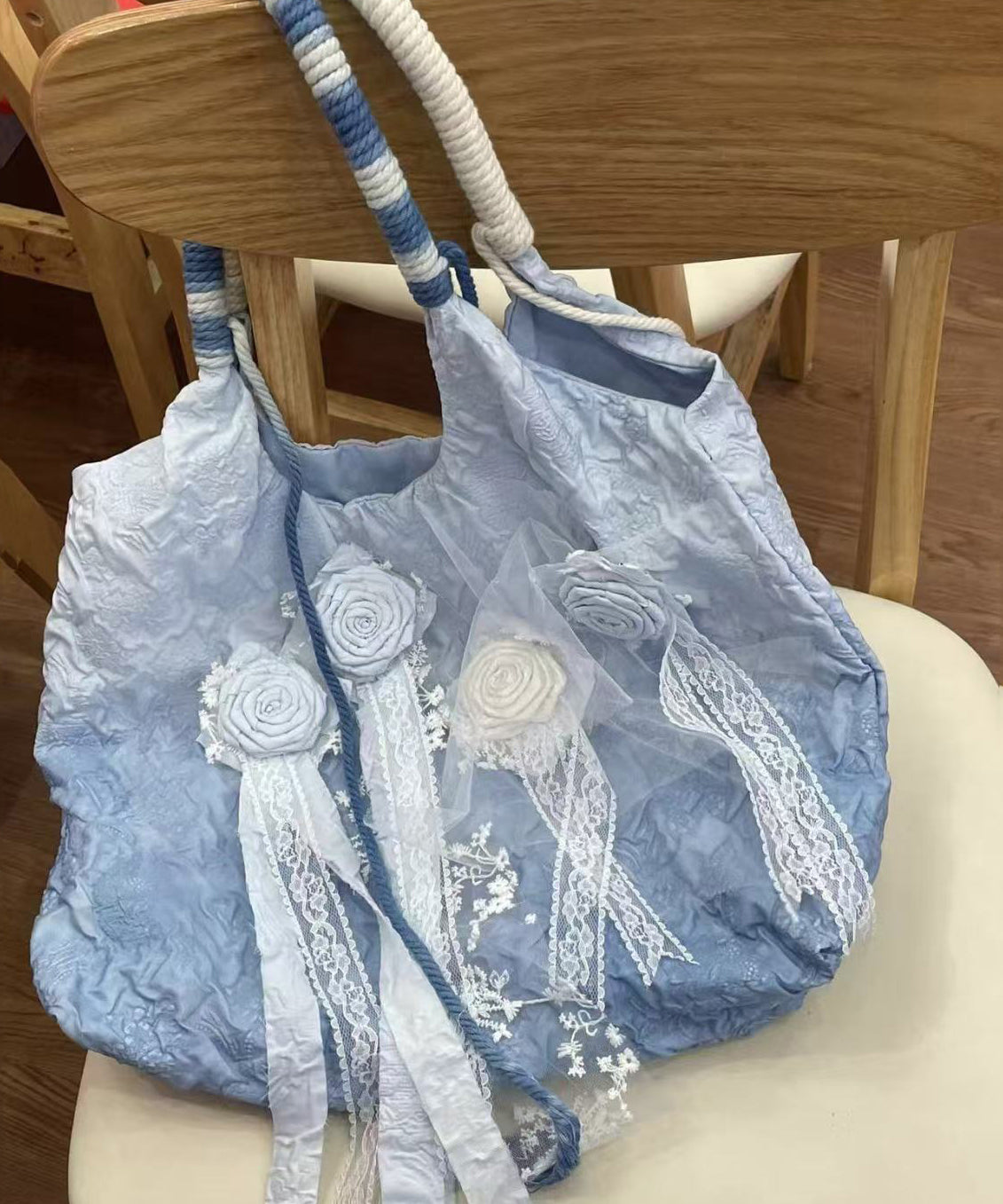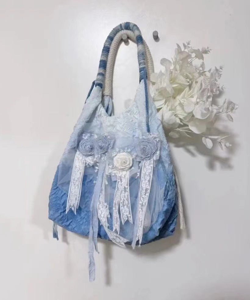 Casual Blue Tie Dye Floral Lace Satchel Handbag