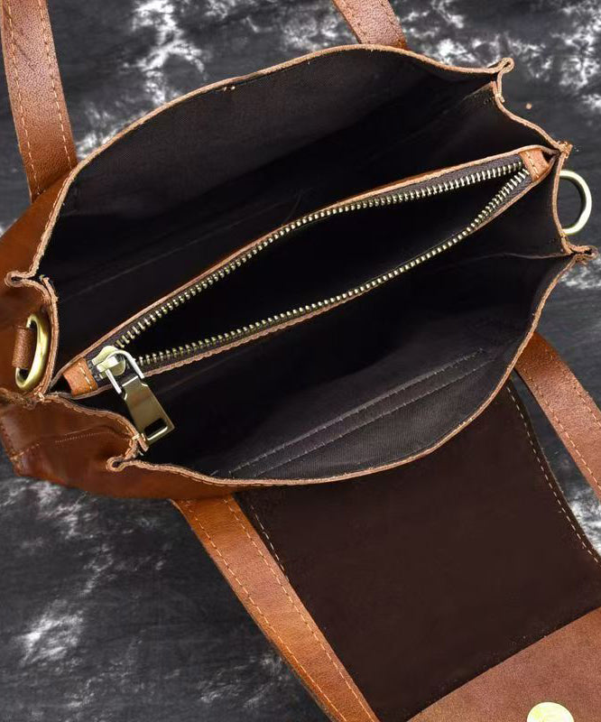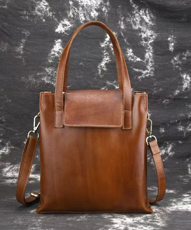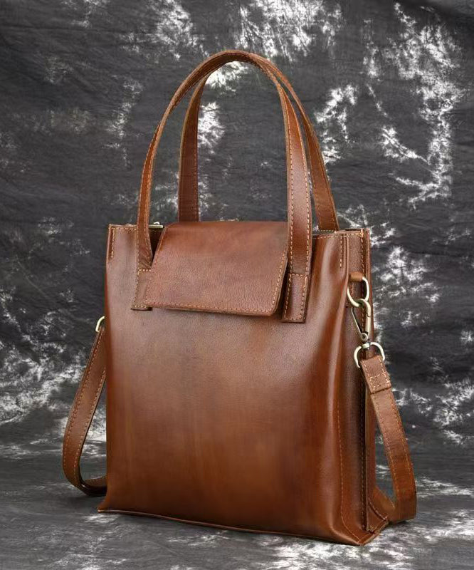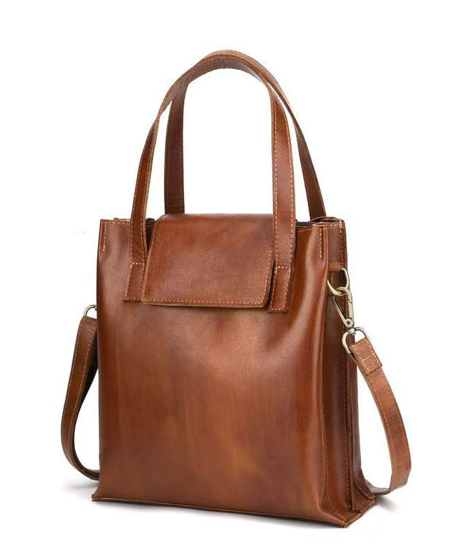 Casual Brown Large Capacity Calf Leather Satchel Handbag