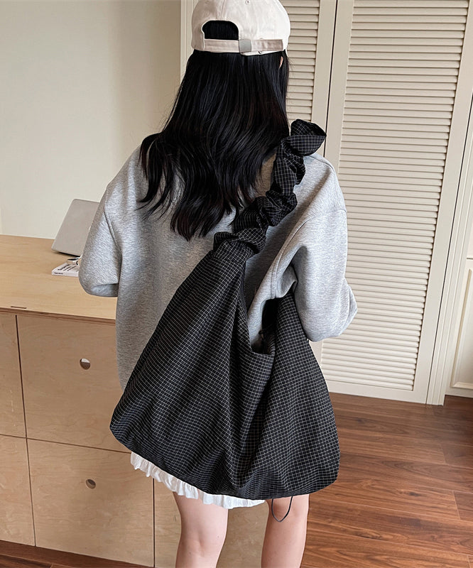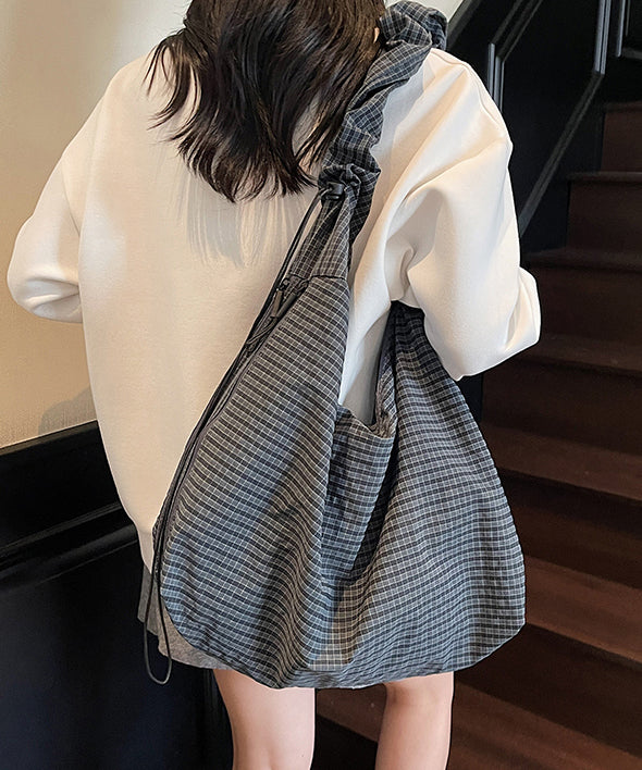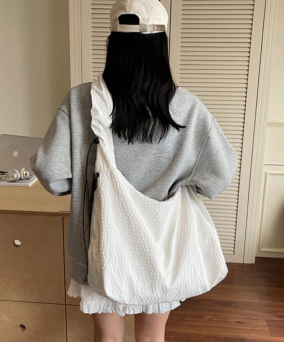 Casual Grey Ruffled Large Capacity Cotton Shoulder Bag