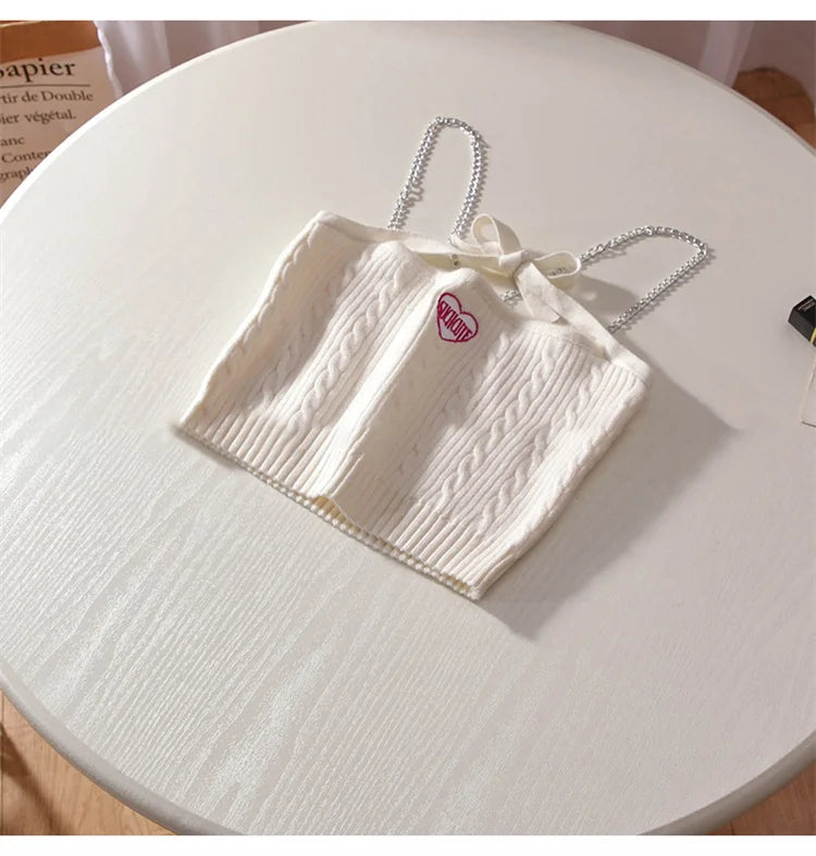 Chain Strap Knitted Crop Top