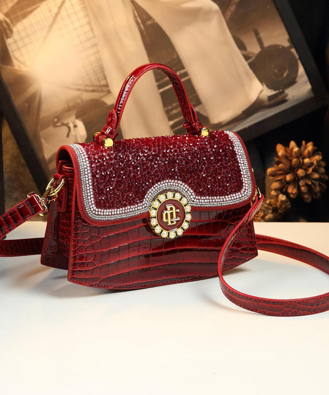 Chic Brown Zircon Durable Calf Leather Messenger Bag