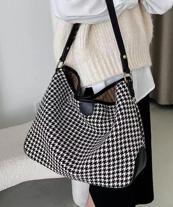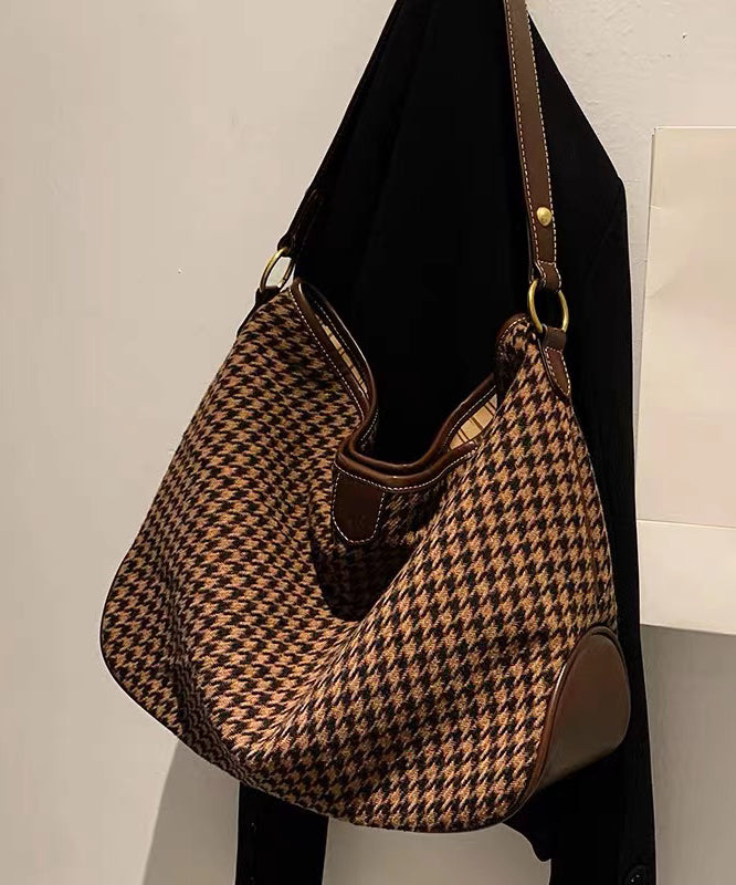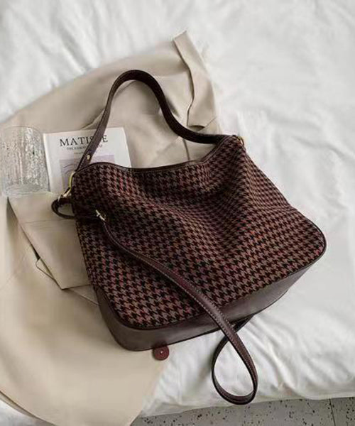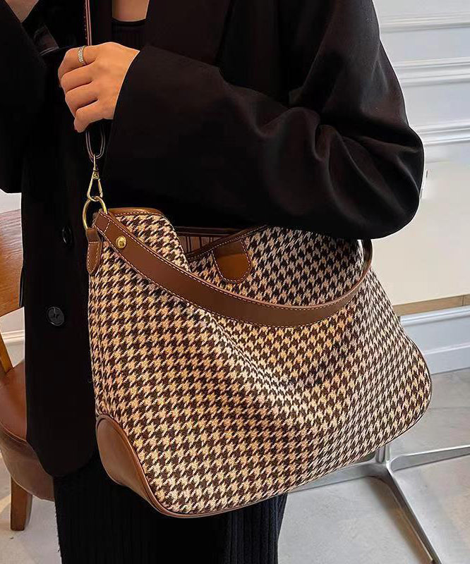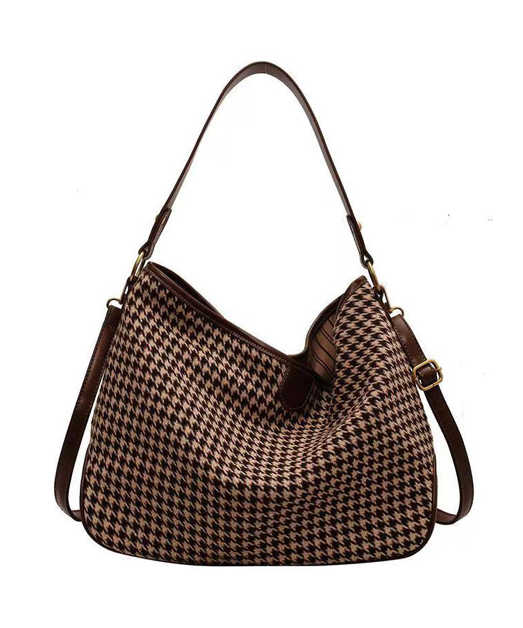Chic Coffee Plaid Woolen Large Capacity Satchel Handbag