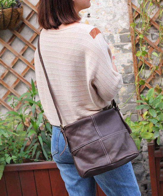 Chic Grey Patchwork Calf Leather Messenger Bag