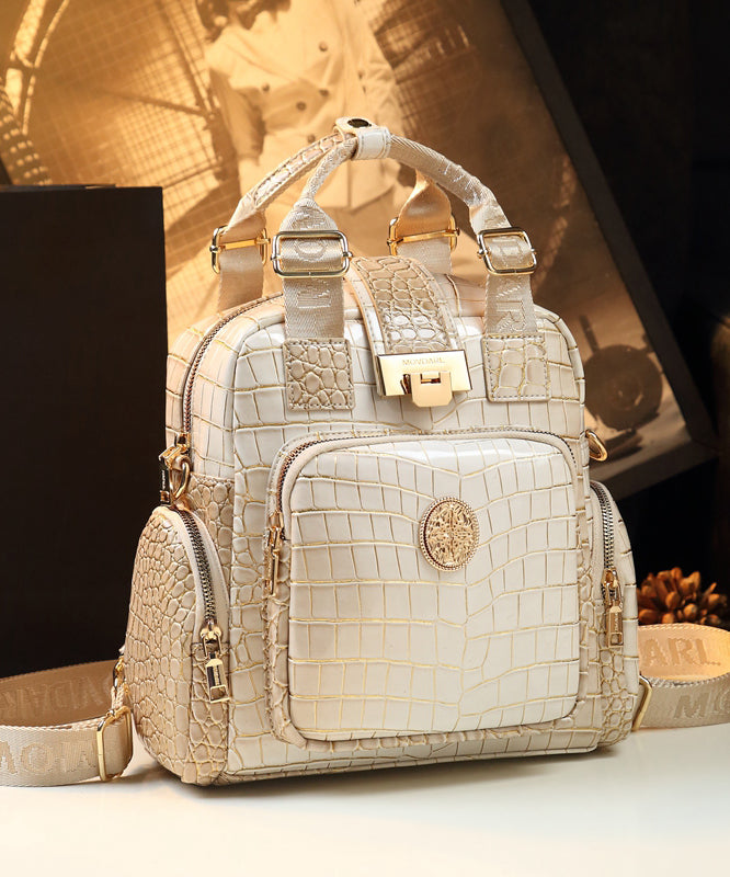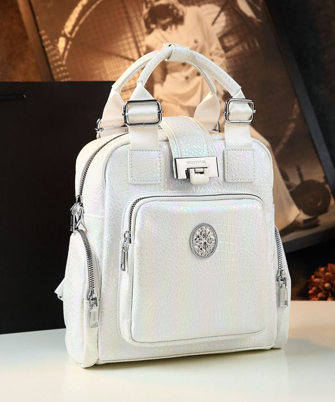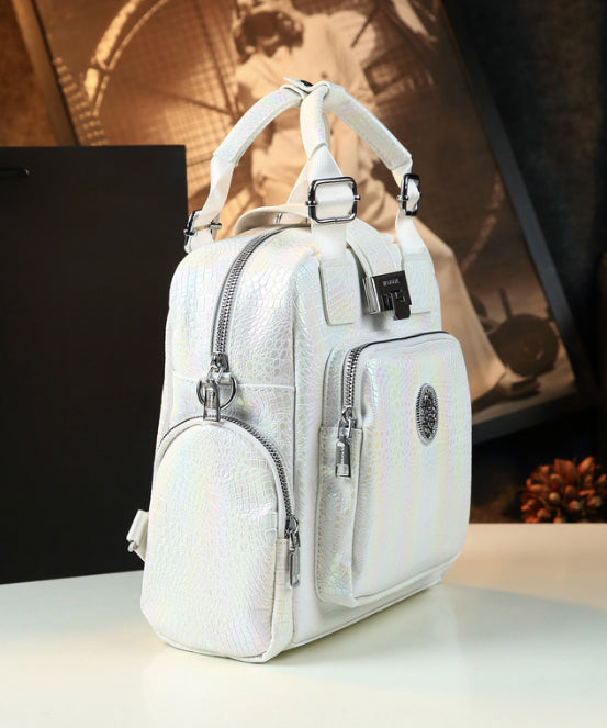 Chic White Embossed Pockets Calf Leather Tote Backpack Bag