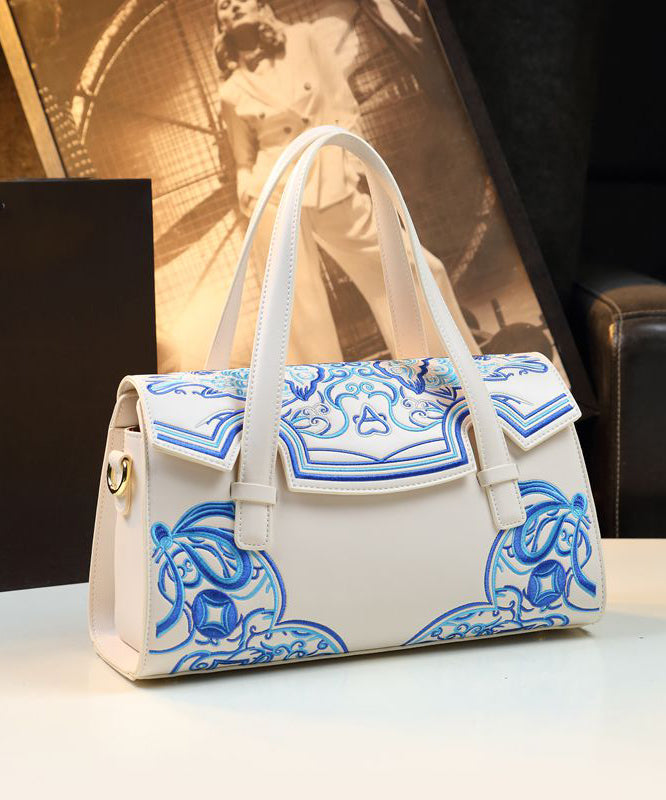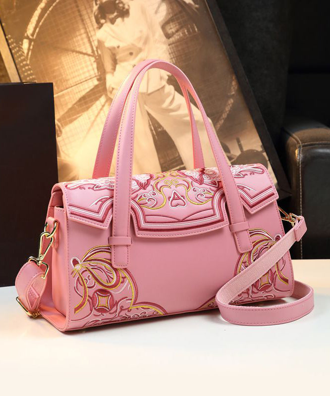 Chinese Style Pink Embroideried Calf Leather Tote Handbag