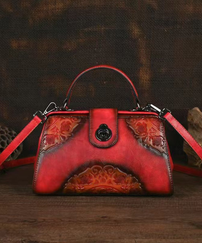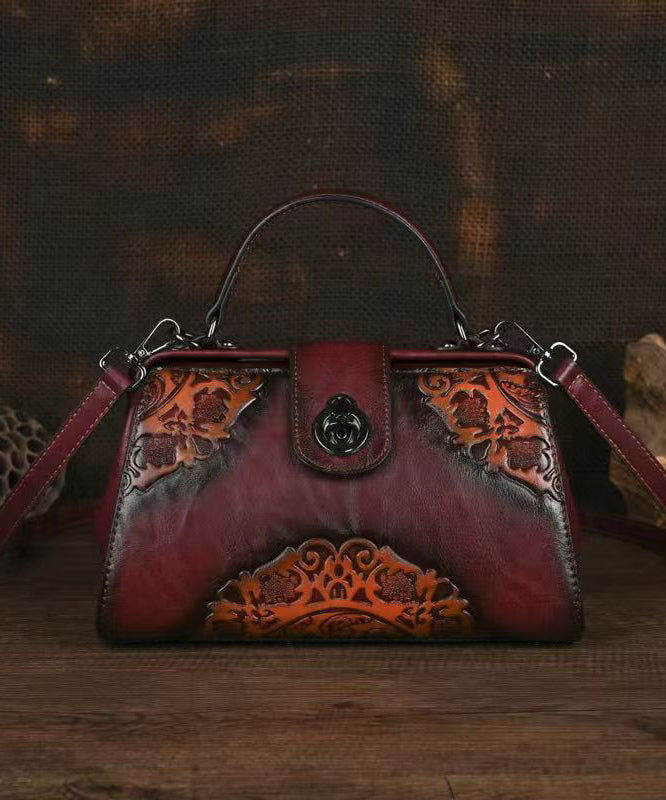 Chinese Style Red Embossed Durable Calf Leather Messenger Bag